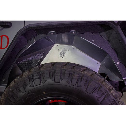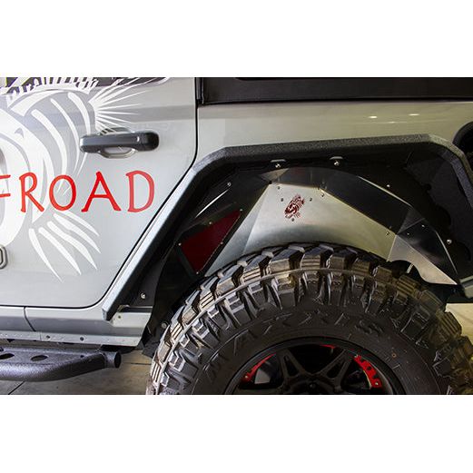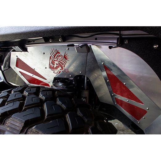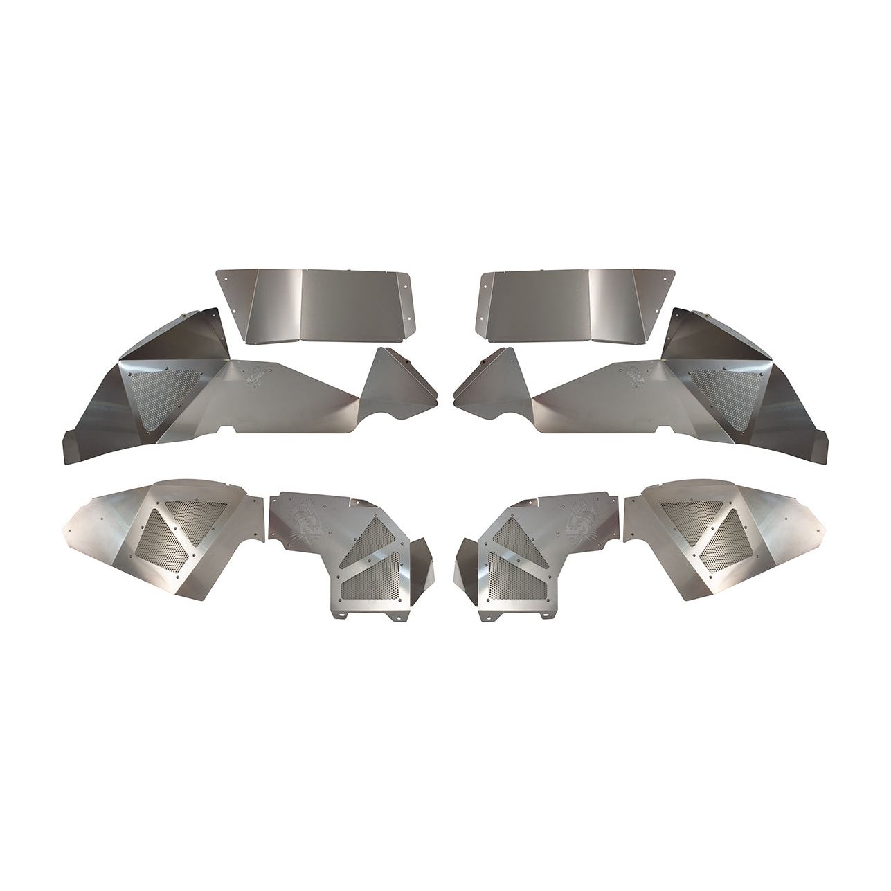 Features: Fits 2018 to Current JL Wrangler, Rubicon and Unlimited 2 and 4-Door Models Made from Raw Aluminum Fishbone logo laser cut on all 4 inners Front and Rear Inner Fender These are only the inner panels Removable Cooling Vents and Accent Plates for Custom Paint Set of 4