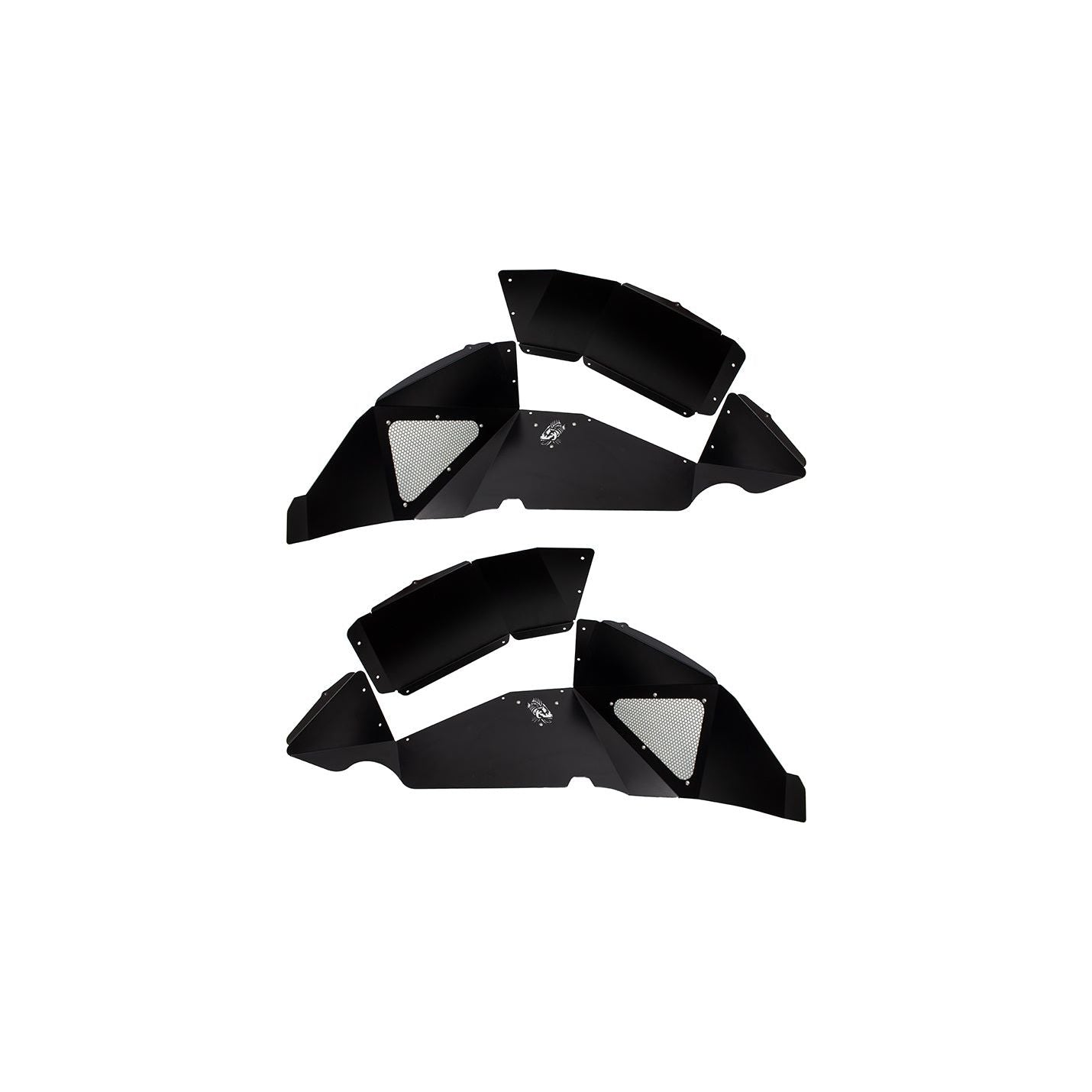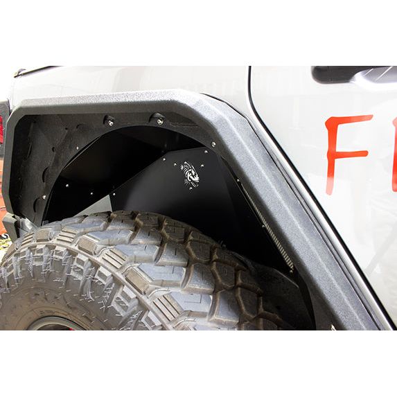 If you have Tube Fenders, you need a set of Aluminum Inner Fenders to finish the look. Once installed these offer protection from rocks and debris entering the engine compartment. These are stamped from Aluminum with the Fishbone Offroad Logo then powder coated black.
