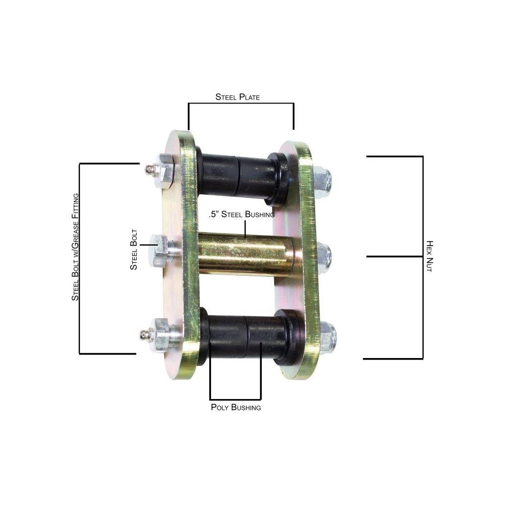 Keep your CJ Wrangler on the road, and with a comfortable and updated ride with this pair of Leaf Spring Greaseable Shackles. Perfect for removing that mind-numbing squeak or just to add some shiny flare, these are a must for any CJ enthusiast! These shackles will lift your vehicle 1/2 inch.