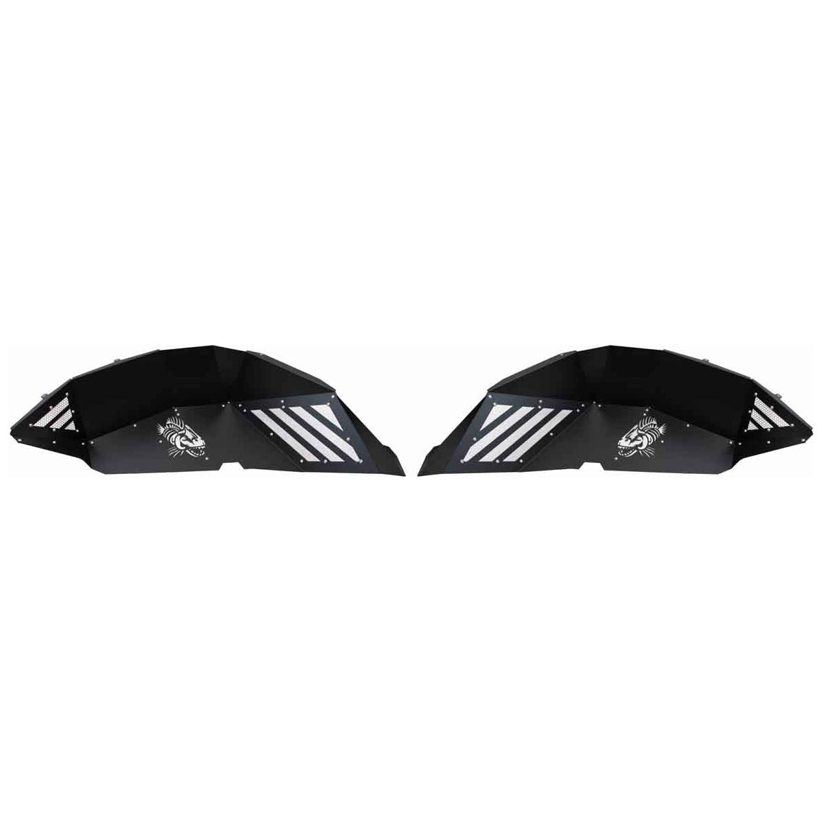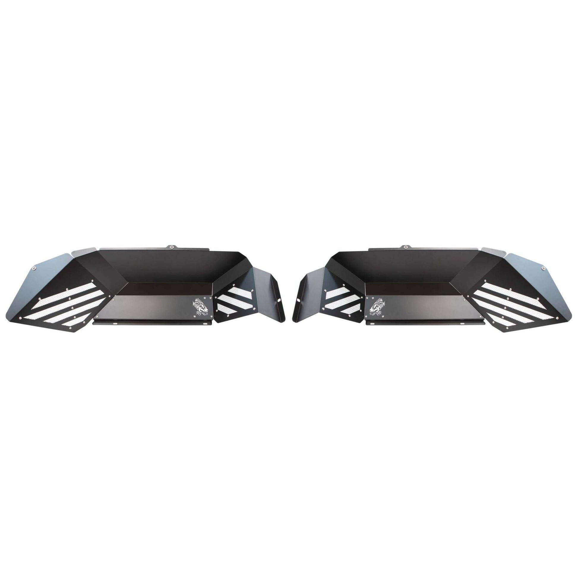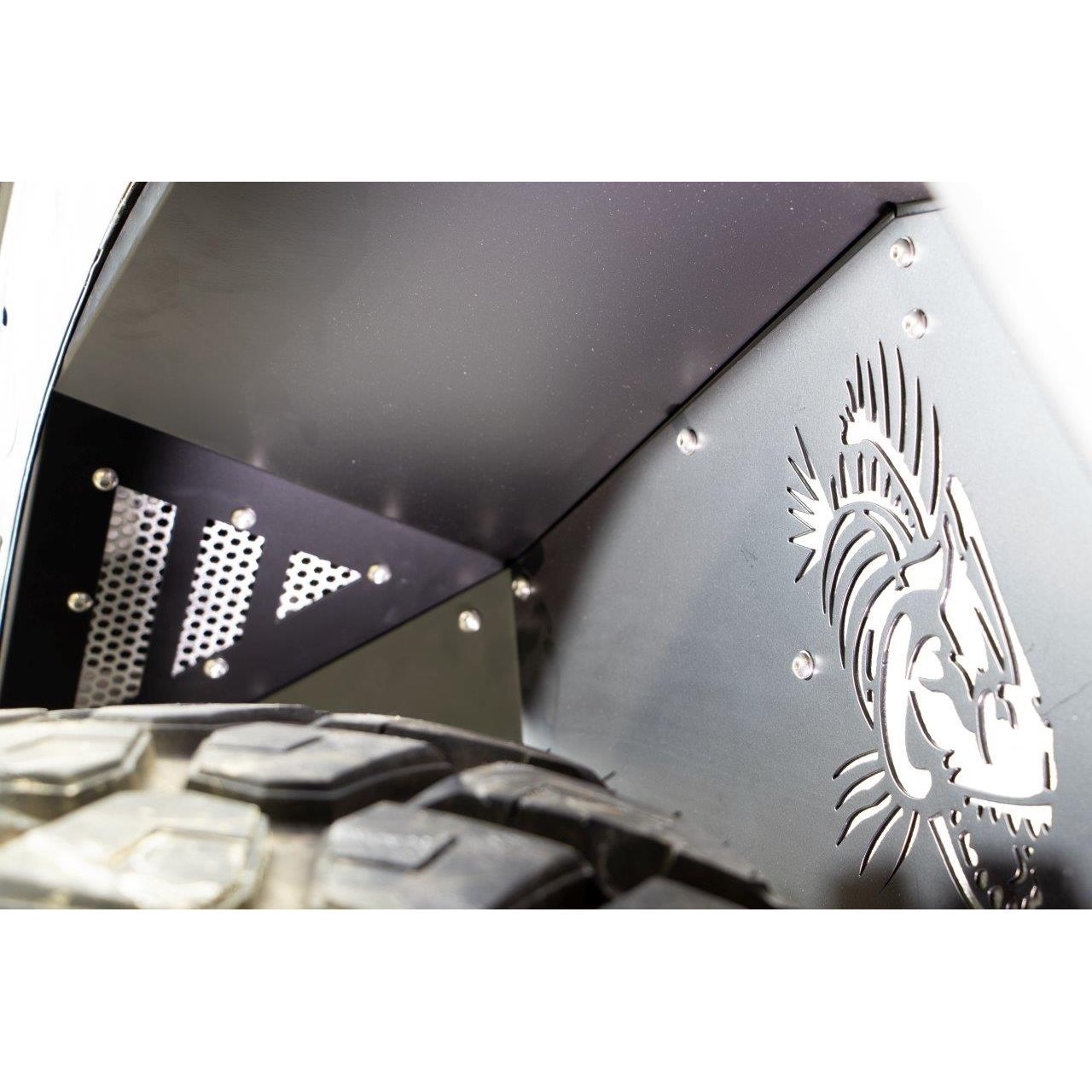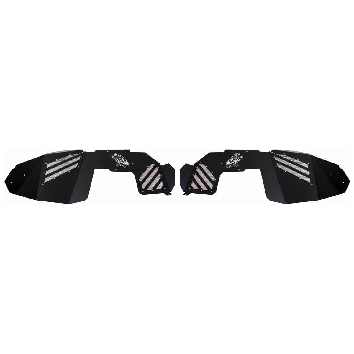 Each set includes both front and rear inner fenders, laser cut with the iconic Fishbone logo on all four panels, adding a distinctive and personalized touch to your vehicle's undercarriage. The innovative design features removable cooling vents and accent plates that can be custom-painted to match your Jeep's unique style.