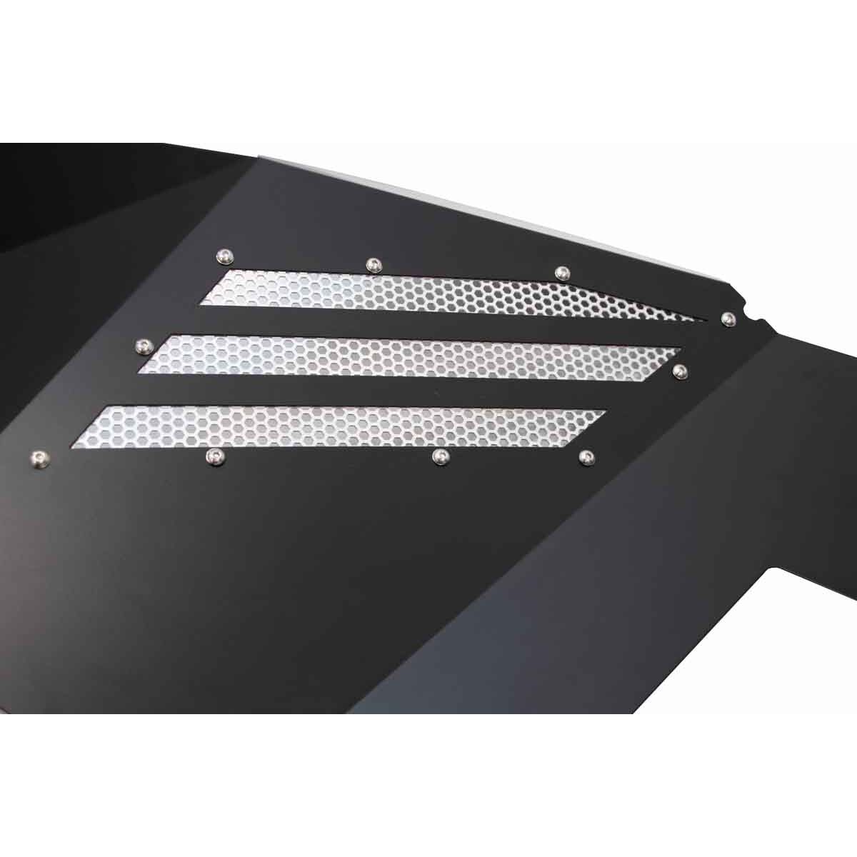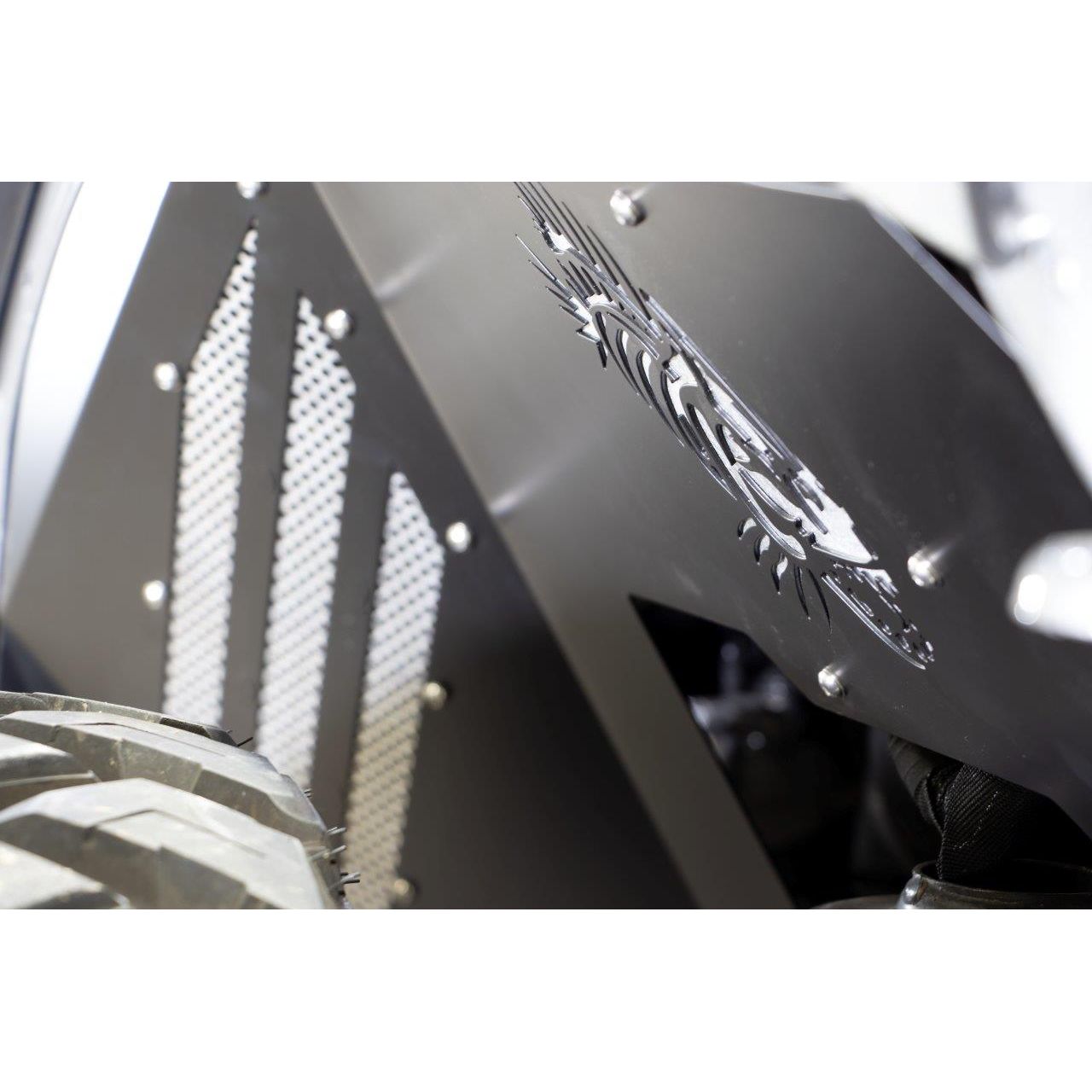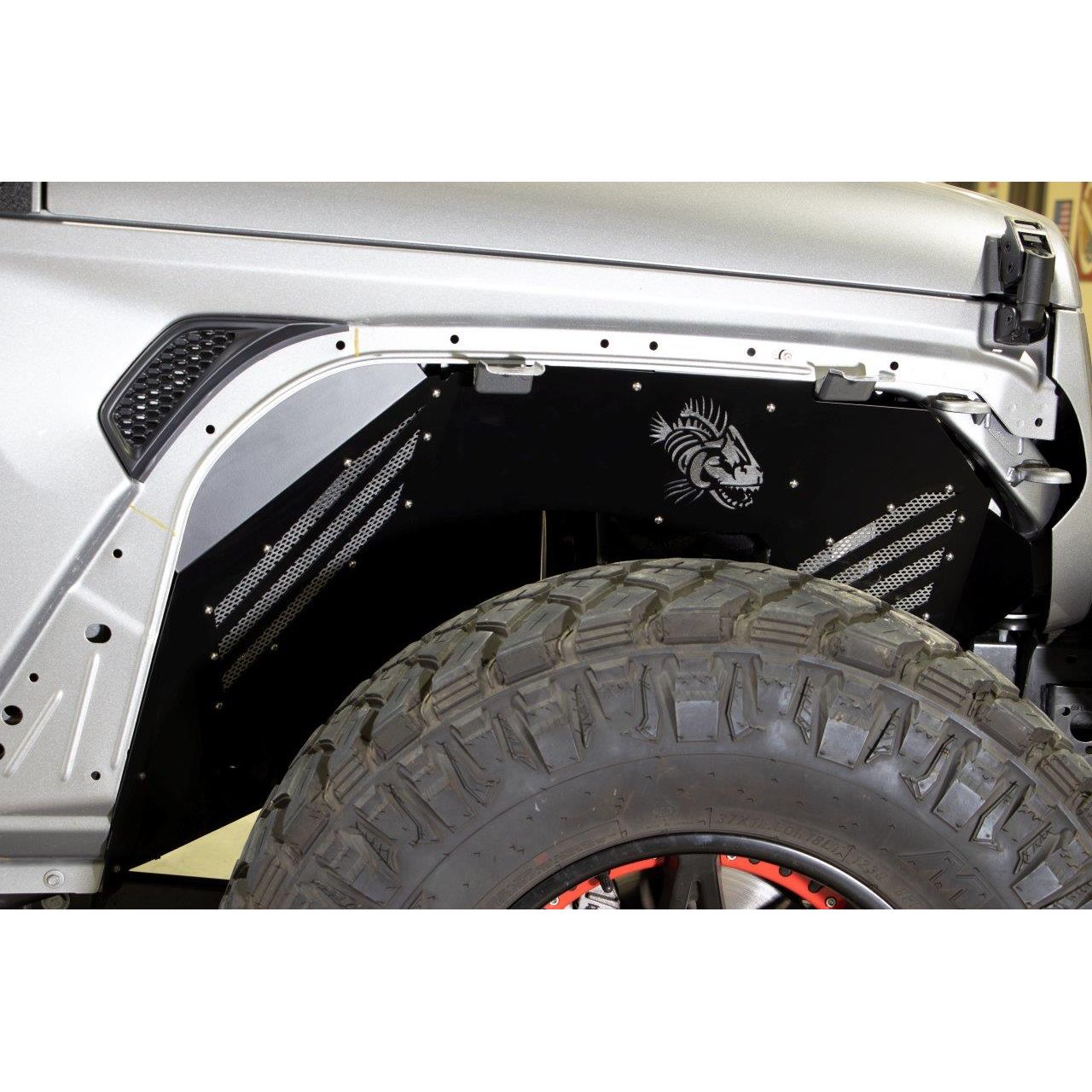 Features: Fits 2018-Current Jeep Wrangler JL Fits 2018-Current Jeep Wrangler Unlimited JLU Will not work with ECO Diesel Black powder coat Aluminum construction Fishbone logo laser cut on all 4 inners Front and Rear Inner Fender These are only the inner panels. Removable Cooling Vents and Accent Plates for Custom Paint