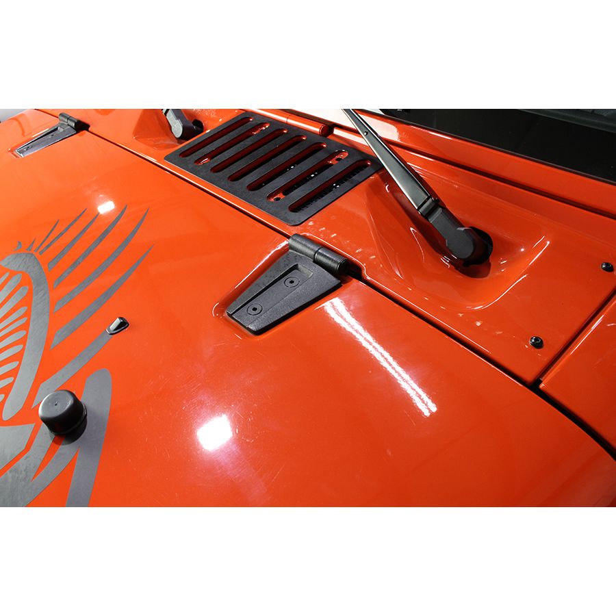 Our hood hinge for your JK comes in a black textured finish that resembles your OE door handles and side mirrors. Each set is inspected for fit, finish, and function. It comes complete with all hardware needed for installation. All Kentrol products come with a limited lifetime warranty.