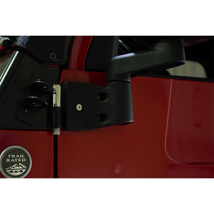 Our door hinge for your 2003-2006 TJ is polished to a mirror finish and supports mounting of your OEM or factory style mirrors.