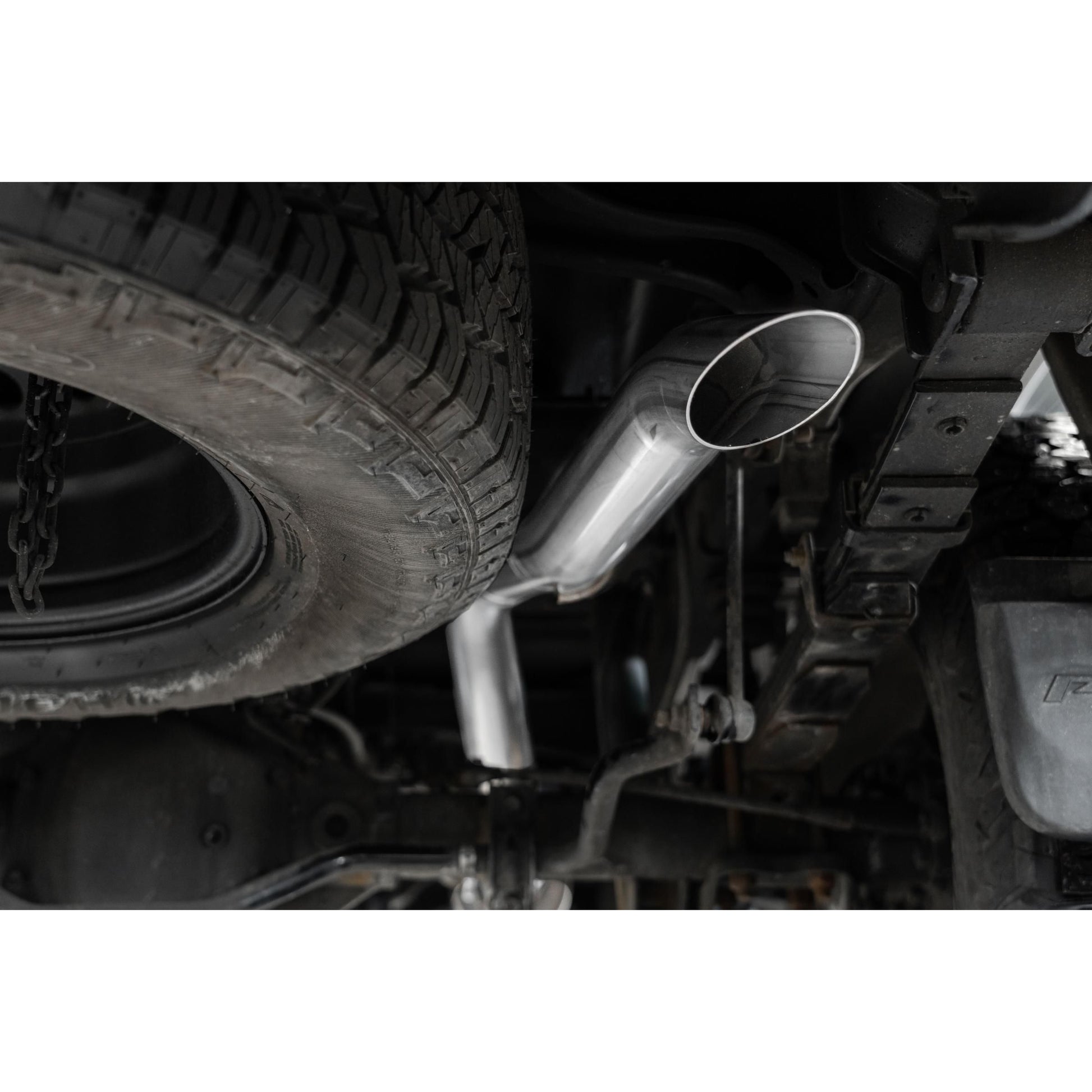 - 2022-Up Nissan Frontier 3.8L Turn Down T304 2.5 Inch Cat-Back 3 Inch Single High Clearance Rear Exit Armor Pro Series