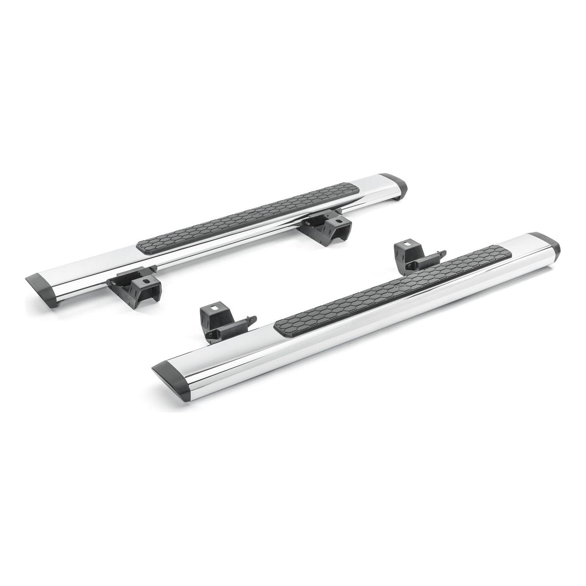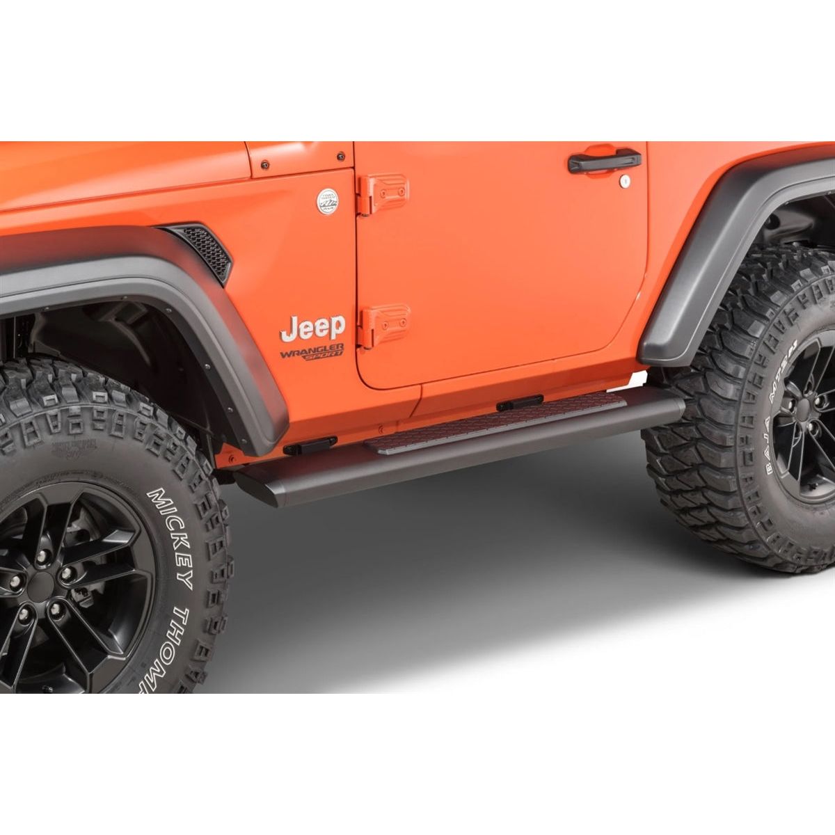 Tubular Side Steps add functionality and style. These Side Steps are chromed aluminum and feature molded steps to provide traction. They are polished and the chromed providing superior protection for durability and the classic chrome appearance. These steps are installed to the underbody and the sill/pinch weld flange utilizing the same brackets and hardware as the production side step version. Fits two-door Jeep Wrangler (JL)