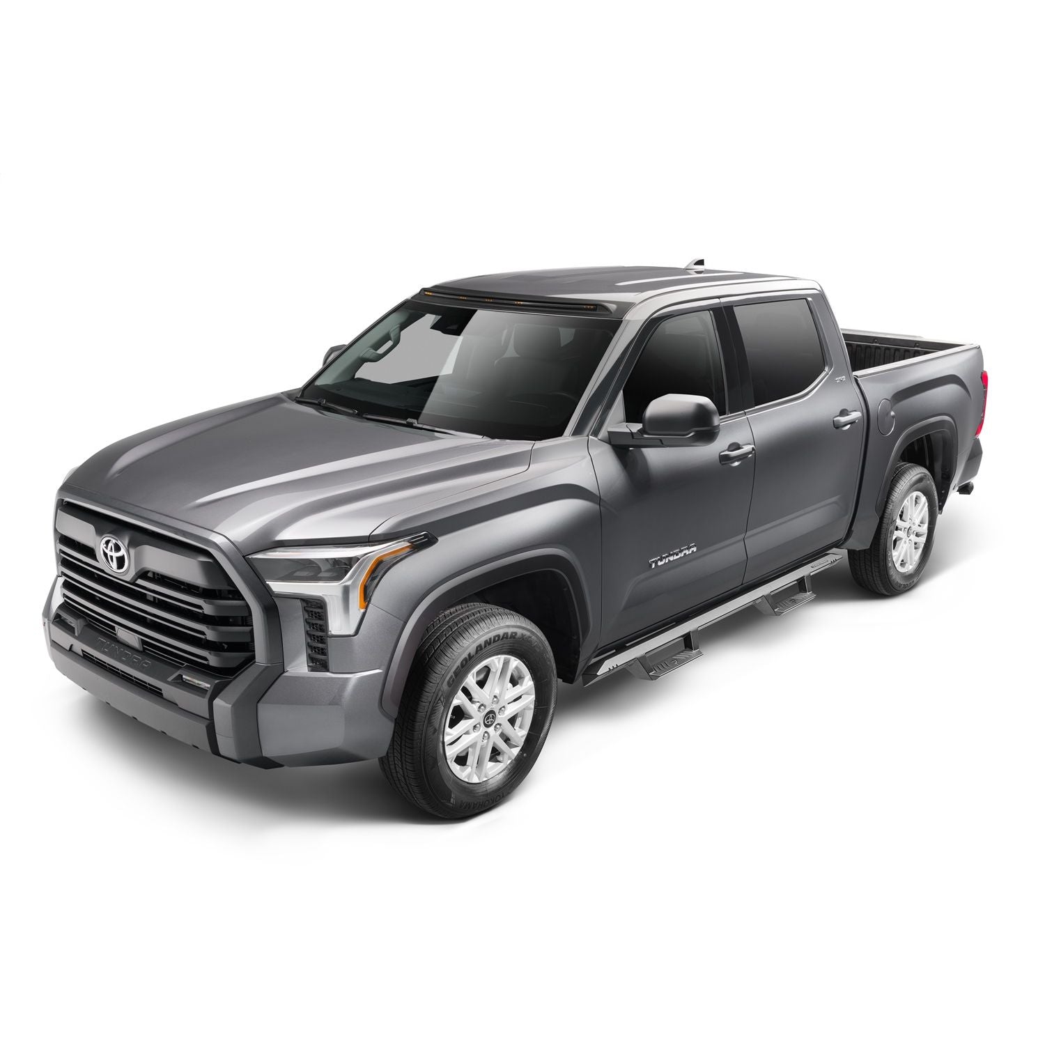 EpYx Step System-Cab Length (2 Steps per Side)-2022-2024 Toyota Tundra CrewMax-Textured Black | The EpYx drop down step provides a sleek and polished aesthetic to your vehicle. The expanded step plate offers the ultimate ease of access to any vehicle. Angular steel construction offers long lasting durability and strength for all of your vehicle needs. All new modular brackets make installation quick and easy. | 5 year Finish Warranty; Lifetime Workmanship Warranty