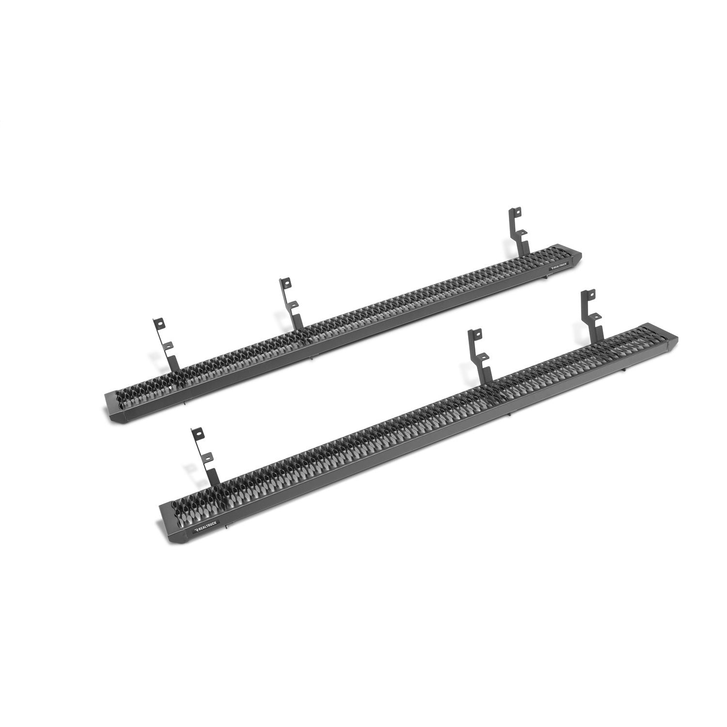 Growler Step System-Cab Length (1 Step per Side)-7 in. Board-2019 (New Body Style)-2024 Chevy Silverado/GMC Sierra 1500/2020-2024 2500 HD/3500 HD Crew Cab-Textured Black | The Growler running board provides a clean yet aggressive look your vehicle. The Sure Grip tread design allows for ultimate traction in any condition. All aluminum construction with modular steel brackets offers long lasting durability and strength for all of your vehicle needs. Bolt-on brackets make installation quick and easy. This is a convenient option for work truck and fleet solutions. | 5 year Finish Warranty; Lifetime Workmanship Warranty