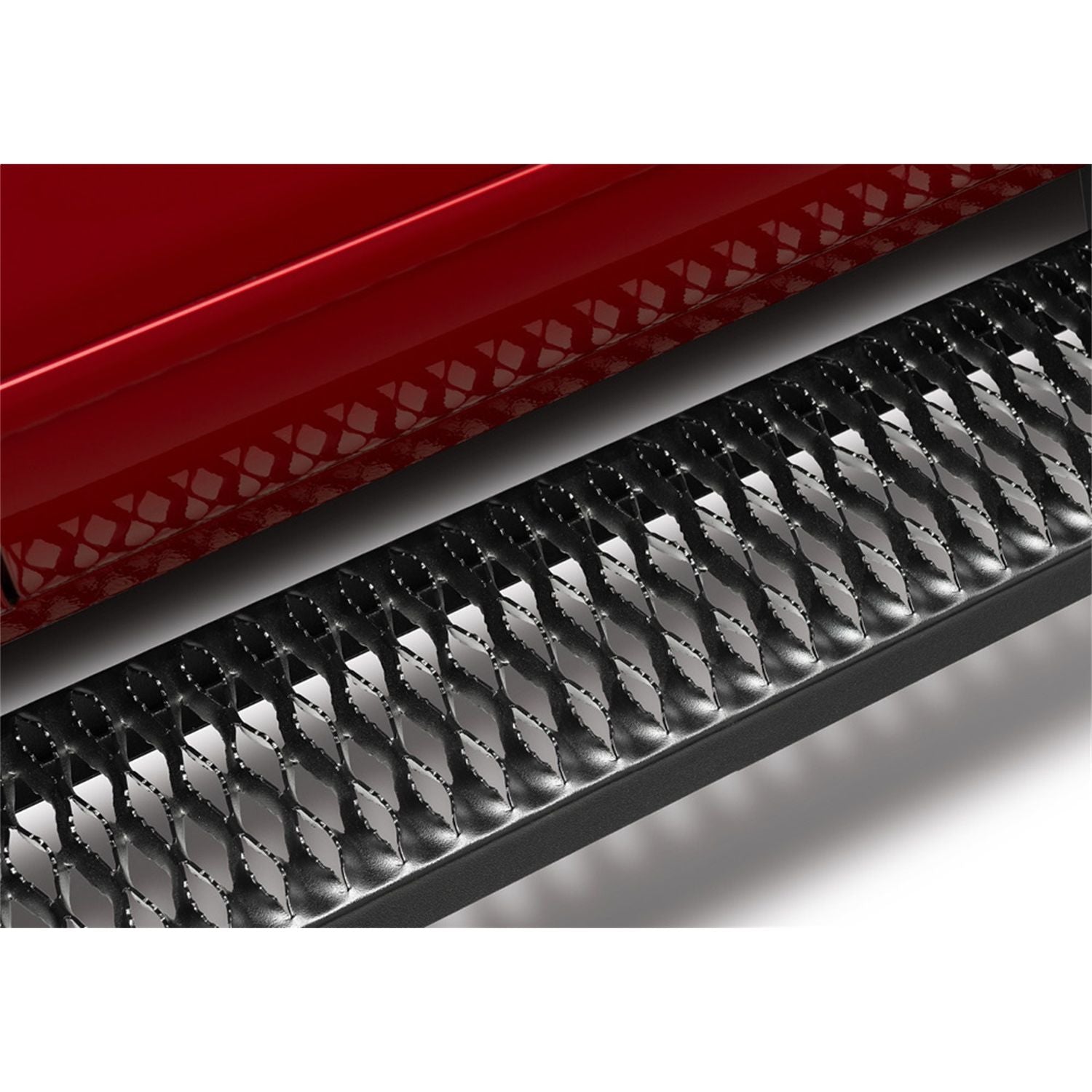 Growler Step System-Cab Length (1 Step per Side)-7 in. Board-1999-2016 Ford F-250/350/450/550 Crew Cab-Textured Black | The Growler running board provides a clean yet aggressive look your vehicle. The Sure Grip tread design allows for ultimate traction in any condition. All aluminum construction with modular steel brackets offers long lasting durability and strength for all of your vehicle needs. Bolt-on brackets make installation quick and easy. This is a convenient option for work truck and fleet solutions. | 5 year Finish Warranty; Lifetime Workmanship Warranty