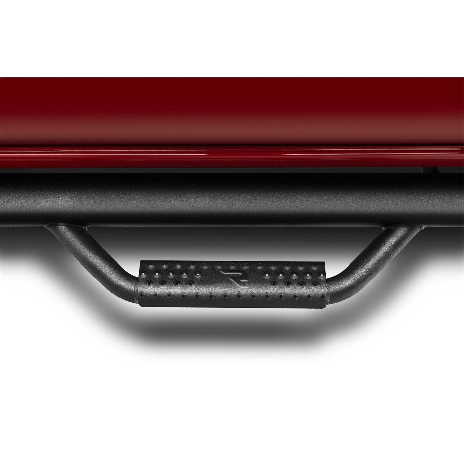Nerf Step Bar-Cab Length (2 Steps per Side)-2014-2018 (2019 Legacy/Limited) Chevy Silverado/GMC Sierra 1500 Double Cab-Textured Black-Special Order | Built with today's work truck in mind, N-FAB offers its patented hoop step design and innovative mounting system in a Cab Length configuration. Designed with classic N-FAB styling, Cab Length Nerf Steps are ideal for flat bed trucks, stake bed trucks, vehicles with campers, and even trucks with side exhaust forward of the rear wheels. Manufactured from .084 wall tubular steel, Cab Length Nerf Steps provide all of the strength and durability for which N-FAB is known. All Nerf Steps have a 5 year Finish and Lifetime Workmanship Warranty. | 5 year Finish Warranty; Lifetime Workmanship Warranty