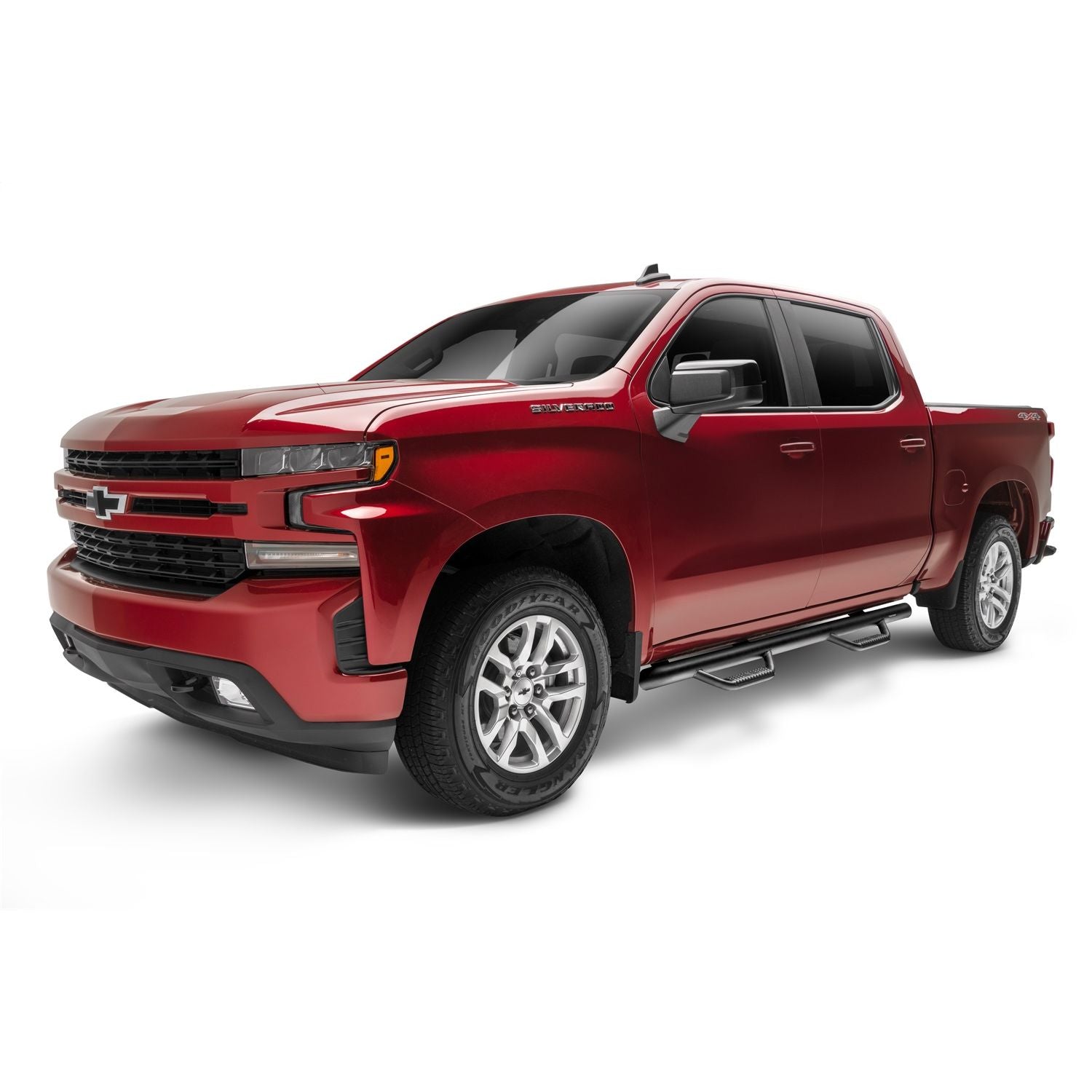 Nerf Step Bar-Cab Length (2 Steps per Side)-2019 (New Body Style)-2024 Chevy Silverado/GMC Sierra 1500/2020-2024 2500 HD/3500 HD Crew Cab-Textured Black-Special Order | Built with today's work truck in mind, N-FAB offers its patented hoop step design and innovative mounting system in a Cab Length configuration. Designed with classic N-FAB styling, Cab Length Nerf Steps are ideal for flat bed trucks, stake bed trucks, vehicles with campers, and even trucks with side exhaust forward of the rear wheels. Manufactured from .084 wall tubular steel, Cab Length Nerf Steps provide all of the strength and durability for which N-FAB is known. All Nerf Steps have a 5 year Finish and Lifetime Workmanship Warranty. | 5 year Finish Warranty; Lifetime Workmanship Warranty