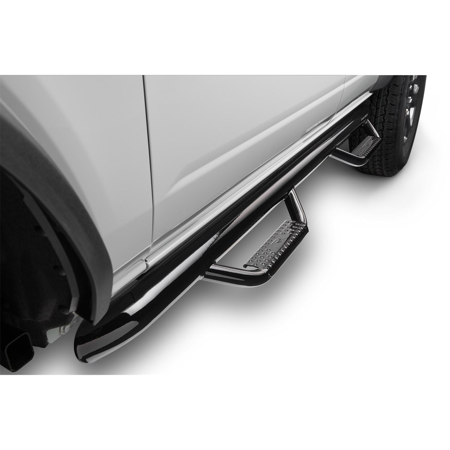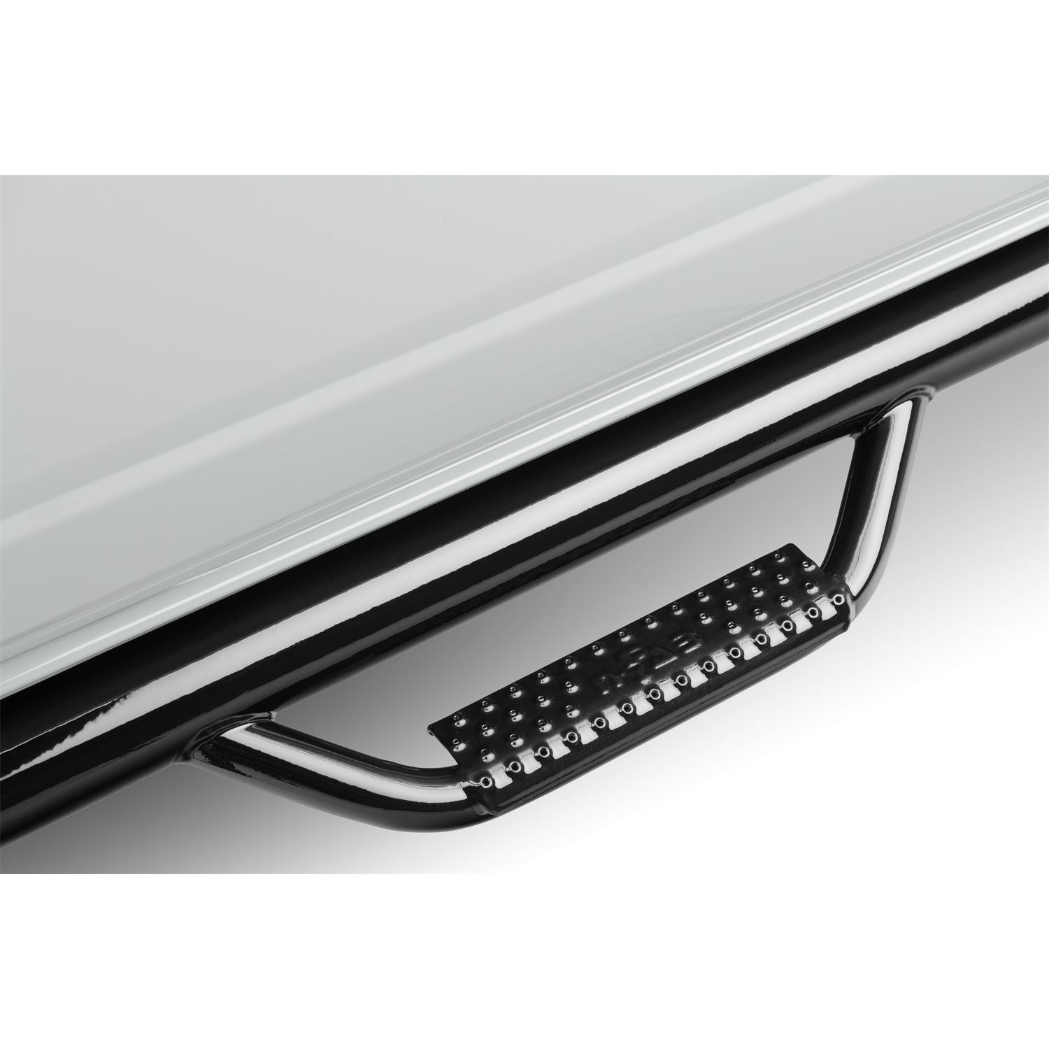 Nerf Step Bar-Cab Length (2 Steps per Side)-21-24 Ford Bronco 4 Dr-Gloss Black | Built with today's work truck in mind, N-FAB offers its patented hoop step design and innovative mounting system in a Cab Length configuration. Designed with classic N-FAB styling, Cab Length Nerf Steps are ideal for flat bed trucks, stake bed trucks, vehicles with campers, and even trucks with side exhaust forward of the rear wheels. Manufactured from .084 wall tubular steel, Cab Length Nerf Steps provide all of the strength and durability for which N-FAB is known. All Nerf Steps have a 5 year Finish and Lifetime Workmanship Warranty. | 5 year Finish Warranty; Lifetime Workmanship Warranty