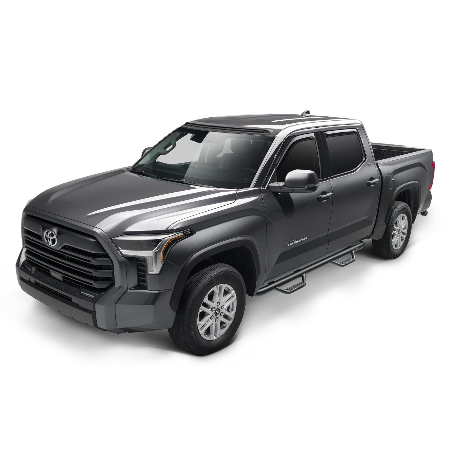 Nerf Step Bar-Wheel-to-Wheel with Bed Access (3 Steps per Side)-3 in. Main Tube Diameter-2007-2021 Toyota Tundra 5ft. 6 Bed CrewMax-Textured Black-Special Order | N-FAB is the industry leader in making quality Nerf-Bars, Pre-Runners and other Off-Road accessories. We design and manufacture the strongest, most durable and best looking Nerf-Bars available in the industry today. At N-FAB are committed to building a heavy duty, high end, high quality tubular parts for all the latest trucks and SUV's dating back to the 80's. When others are using thinner and thinner tube to cut cost we still use heavier gauge .084 wall steel, with an all welded one piece construction. We Zinc coat each part for better corrosion protection. Lastly we finish our standard parts in a thick layer of high gloss powder-coating for a long lasting finish coat. These standards far surpass any of our competition. If you want products that are unique and designed to last longer, look cleaner, function better then N-FAB has what you are looking for! | 5 year Finish Warranty; Lifetime Workmanship Warranty