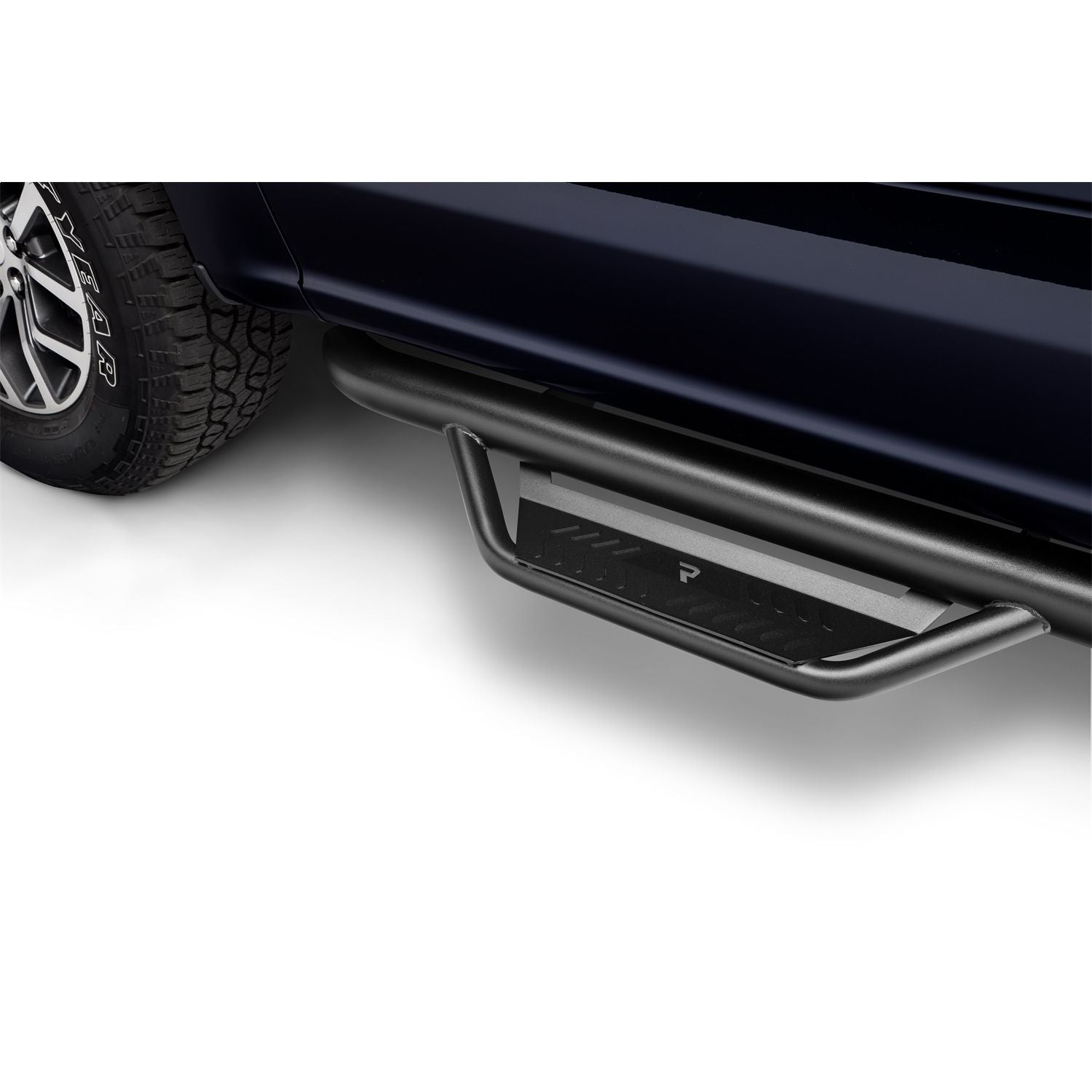 Podium Step LG-Cab Length (2 Steps per Side)-3 in. Main Tube Diameter-2017-2024 Ford F-250/350 SuperCab-Textured Black | Patented N-FAB hoop step design featuring an all-new expanded and enclosed sure-grip step plate. With a 3 in. main tube diameter, this application fits high and tight to the vehicle body for a clean modern style. Fully welded 1-piece construction for strength, long lasting durability and ease of installation! Created from Stainless Steel construction. Drop down step design and location is engineered to allow for ease of access on stock or lifted vehicles. Lifetime finish warranty on polished stainless steel, 5 year finish warranty on textured black finish and lifetime craftsmanship warranty. For the ultimate vehicle access experience in any condition! | 5 year Finish Warranty; Lifetime Workmanship Warranty