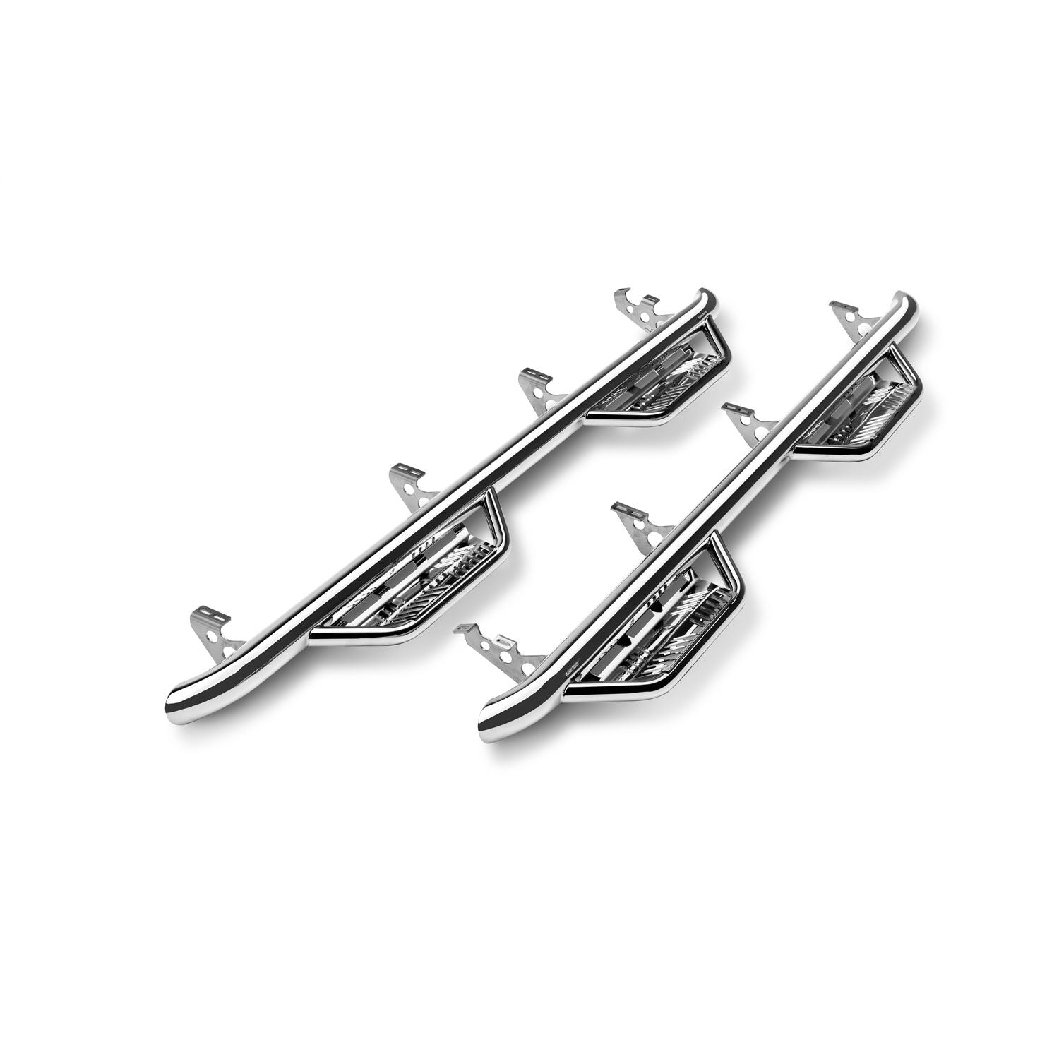 Podium Step SS-Cab Length (2 Steps per Side)-3 in. Main Tube Diameter-2019-2024 (New Body Style) Ram 1500 Crew Cab-Polished Stainless | Patented N-FAB hoop step design featuring an all-new expanded and enclosed sure-grip step plate. With a 3 in. main tube diameter, this application fits high and tight to the vehicle body for a clean modern style. Fully welded 1-piece construction for strength, long lasting durability and ease of installation! Created from Stainless Steel construction. Drop down step design and location is engineered to allow for ease of access on stock or lifted vehicles. Lifetime finish warranty on polished stainless steel, 5 year finish warranty on textured black finish and lifetime craftsmanship warranty. For the ultimate vehicle access experience in any condition! | Lifetime Finish Warranty; Lifetime Workmanship Warranty