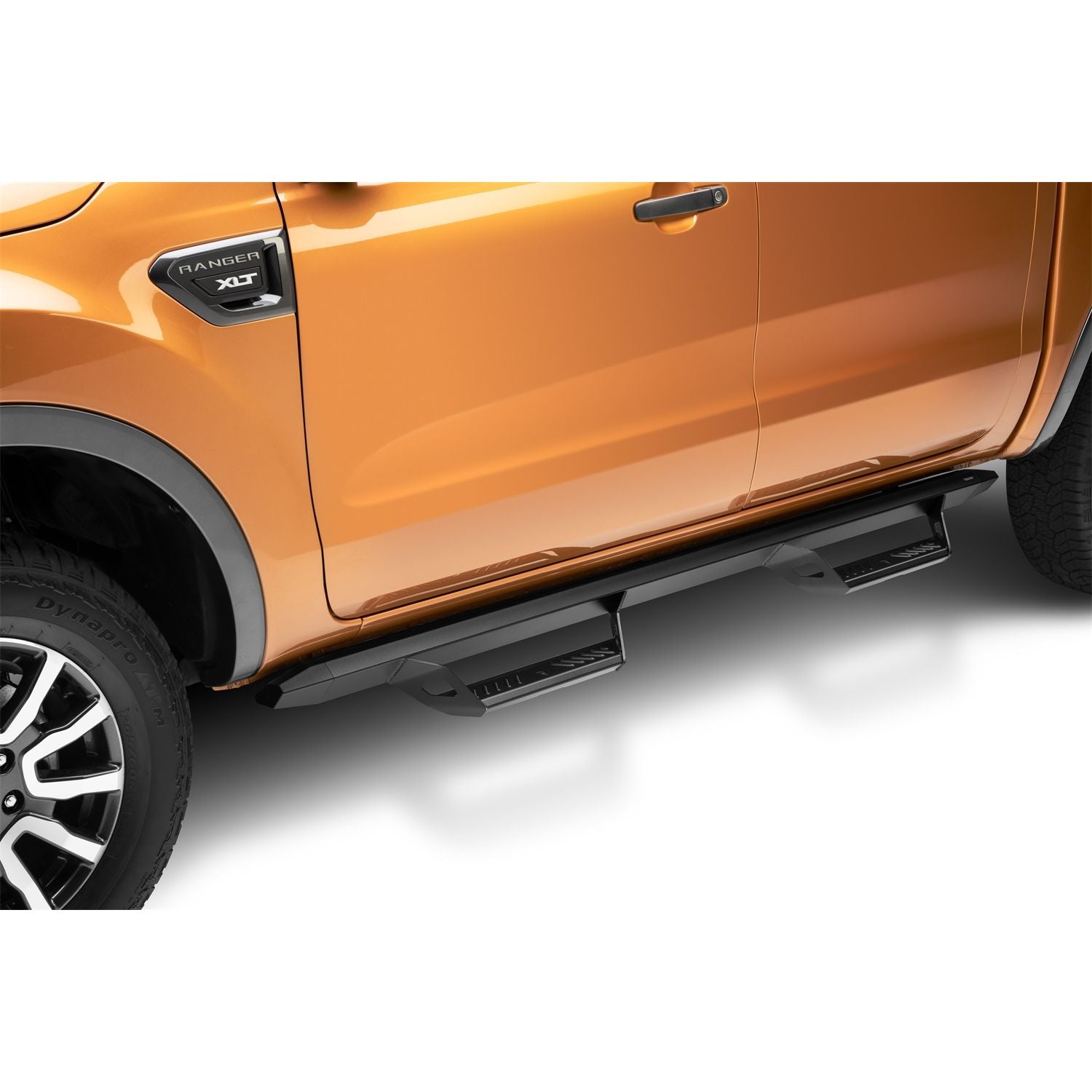 Predator Pro-Cab Length (2 Steps per Side)-2019-2024 Ford Ranger SuperCrew-Textured Black | With one of the industry's tightest fitting tubes, the N-Fab Predator Pro step system creates an ultimate clean look on your truck or Jeep . Our patented drop-down hoop step has a large dimpled step pad for ease of access in any condition. Predator Pro's fully welded 1-piece design provides strength, durability, and installation. | 5 year Finish Warranty; Lifetime Workmanship Warranty