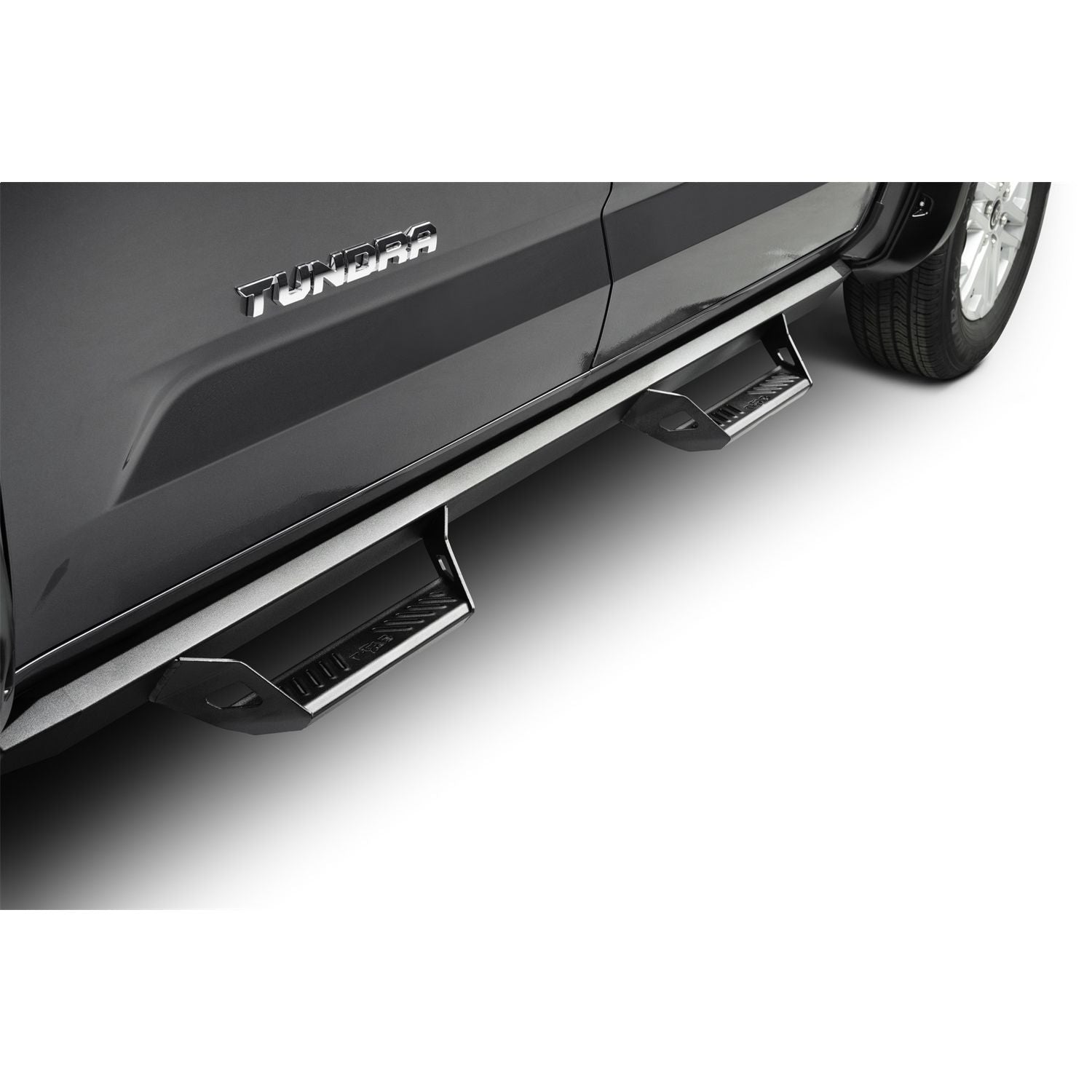 Predator Pro-Cab Length (2 Steps per Side)-2022-2024 Toyota TundraCrewMax-Textured Black | With one of the industry's tightest fitting tubes, the N-Fab Predator Pro step system creates an ultimate clean look on your truck or Jeep . Our patented drop-down hoop step has a large dimpled step pad for ease of access in any condition. Predator Pro's fully welded 1-piece design provides strength, durability, and installation. | 5 year Finish Warranty; Lifetime Workmanship Warranty