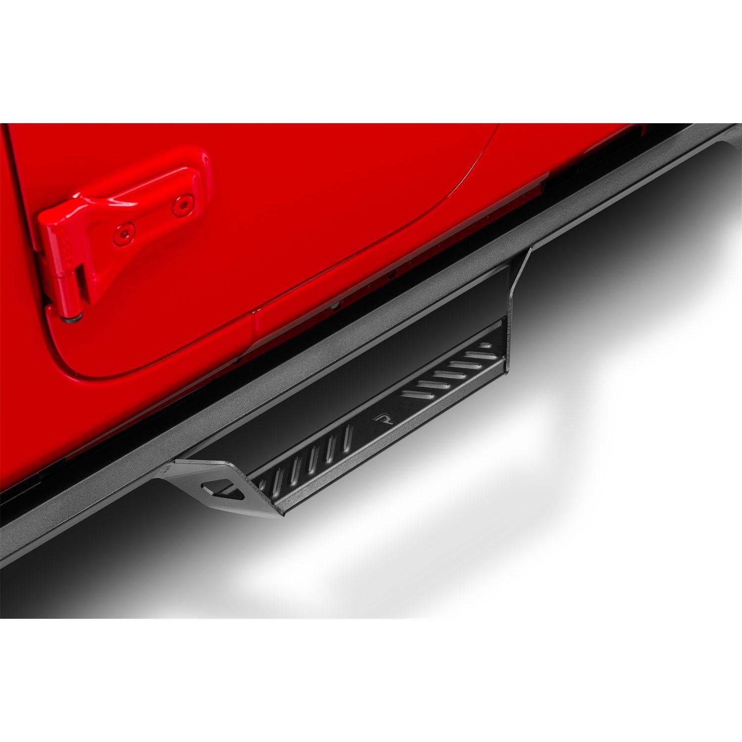 Predator Pro-Full Length (2 Steps per Side)-2020-2024 Jeep Gladiator JT 4-Door-Textured Black | With one of the industry's tightest fitting tubes, the N-Fab Predator Pro step system creates an ultimate clean look on your truck or Jeep . Our patented drop-down hoop step has a large dimpled step pad for ease of access in any condition. Predator Pro's fully welded 1-piece design provides strength, durability, and installation. | 5 year Finish Warranty; Lifetime Workmanship Warranty