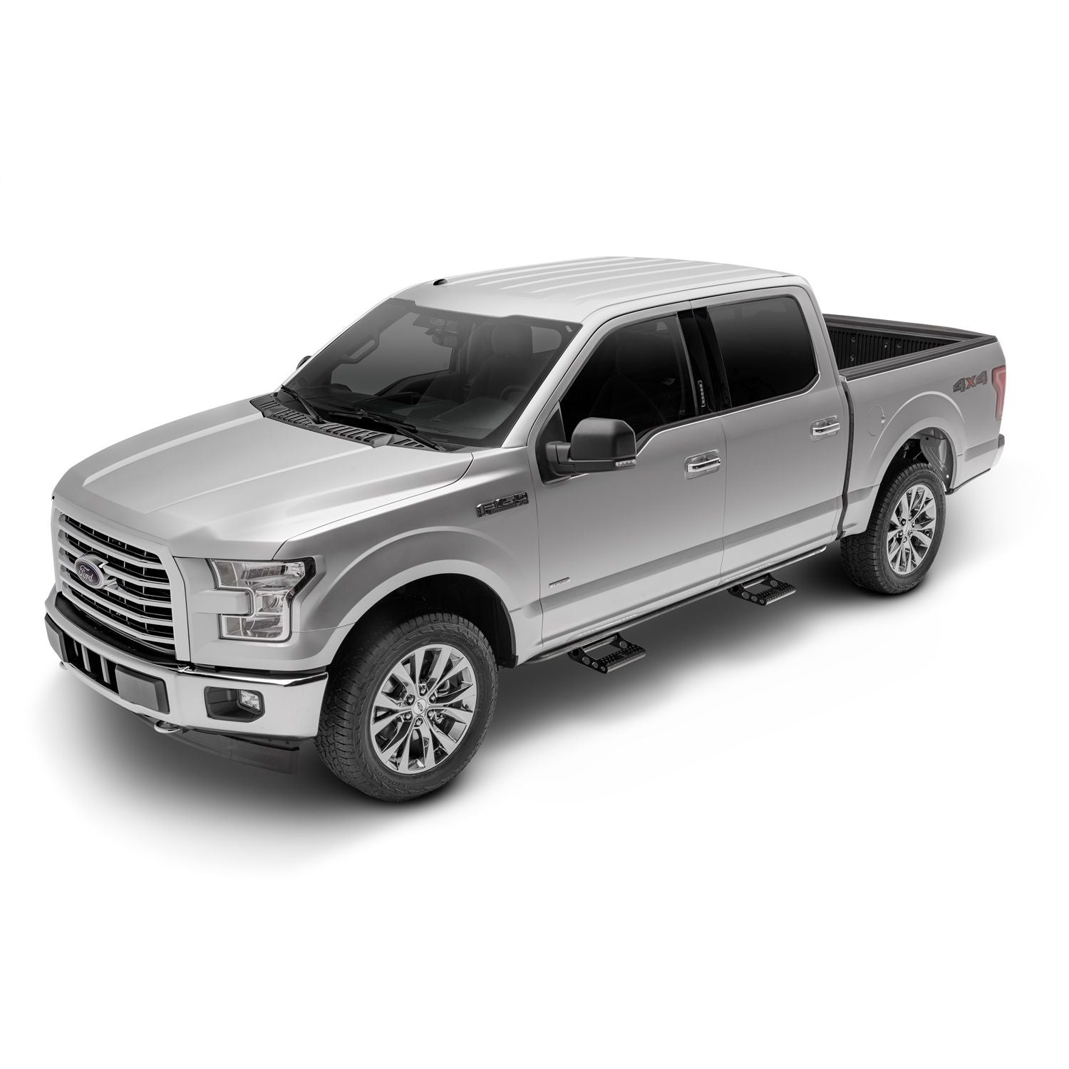 RKR Step System-Cab Length (2 Step Mounts/2 Steps per Side)-1.75 in. Rails-2015-2024 Ford F-150 SuperCrew-Textured Black | N-FAB RKR Rails Provide superior protection while enhancing the look of the vehicle. Constructed using 0.12 in. wall, 1.75 in. tubular steel, RKR Rails are treated inside and out for extra corrosion resistance so you know they are built to last. Finished with a durable textured black powder coat, N-FAB RKR Rails look as good as they perform both on and off-road. Making a great product even better, N-FAB offers optional Detachable Steps that are compatible with all N-FAB RKR Rails and Factory Toyota FJ Rock Rails. These steps offer convenient vehicle access for daily use and can be removed to allow for maximum group clearance when off-road. | 5 year Finish Warranty; Lifetime Workmanship Warranty