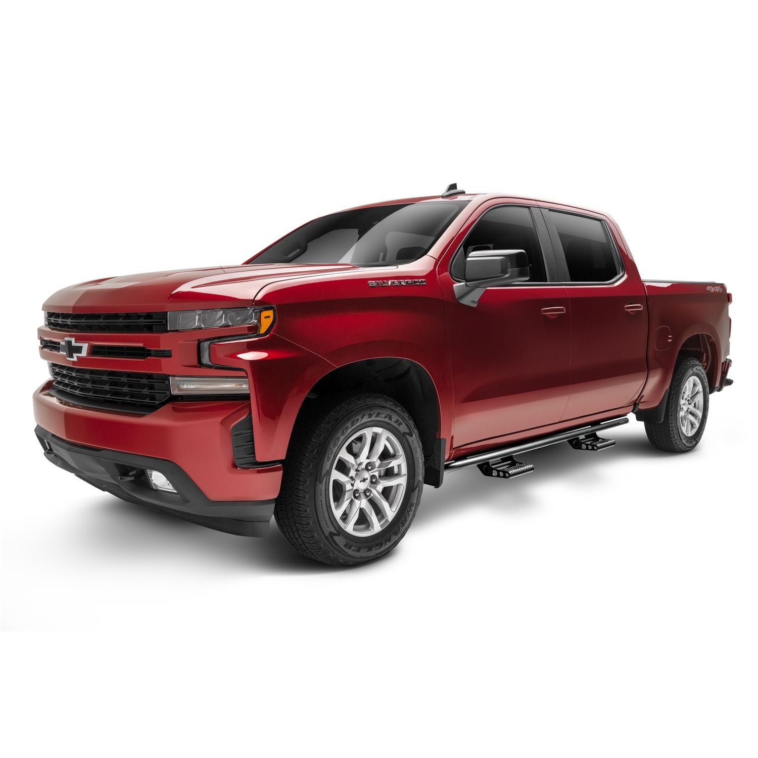 RKR Step System-Cab Length (2 Step Mounts/2 Steps per Side)-1.75 in. Rails-2019 (New Body Style)-2024 Chevy Silverado/GMC Sierra 1500/2020-2024 2500 HD/3500 HD Crew Cab-Textured Black | N-FAB RKR Rails Provide superior protection while enhancing the look of the vehicle. Constructed using 0.12 in. wall, 1.75 in. tubular steel, RKR Rails are treated inside and out for extra corrosion resistance so you know they are built to last. Finished with a durable textured black powder coat, N-FAB RKR Rails look as good as they perform both on and off-road. Making a great product even better, N-FAB offers optional Detachable Steps that are compatible with all N-FAB RKR Rails and Factory Toyota FJ Rock Rails. These steps offer convenient vehicle access for daily use and can be removed to allow for maximum group clearance when off-road. | 5 year Finish Warranty; Lifetime Workmanship Warranty