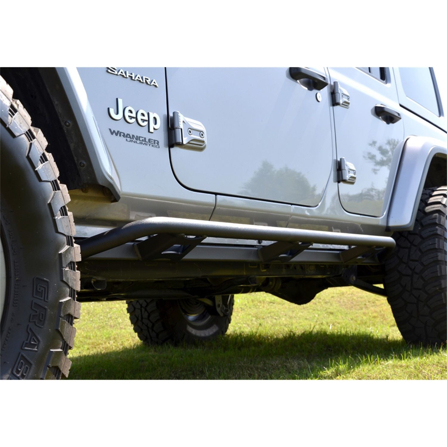 TrailSlider Step System-Cab Length (2 Steps per Side)-2018-2024 Jeep Wrangler JL 4-Door-Textured Black | The N-FAB TrailSlider is a body-mount rock slider that features 3/16 in. heavy gauge steel tubing and gussets that will hold up to extreme conditions. The TrailSlider also comes powder-coated in our durable, textured black finish. Easy to install with no special tools required, the new N-FAB TrailSlider is the ultimate upgrade for any 4-Runner, Wrangler, Tacoma, Colorado, and Ranger. | 5 year Finish Warranty; Lifetime Workmanship Warranty