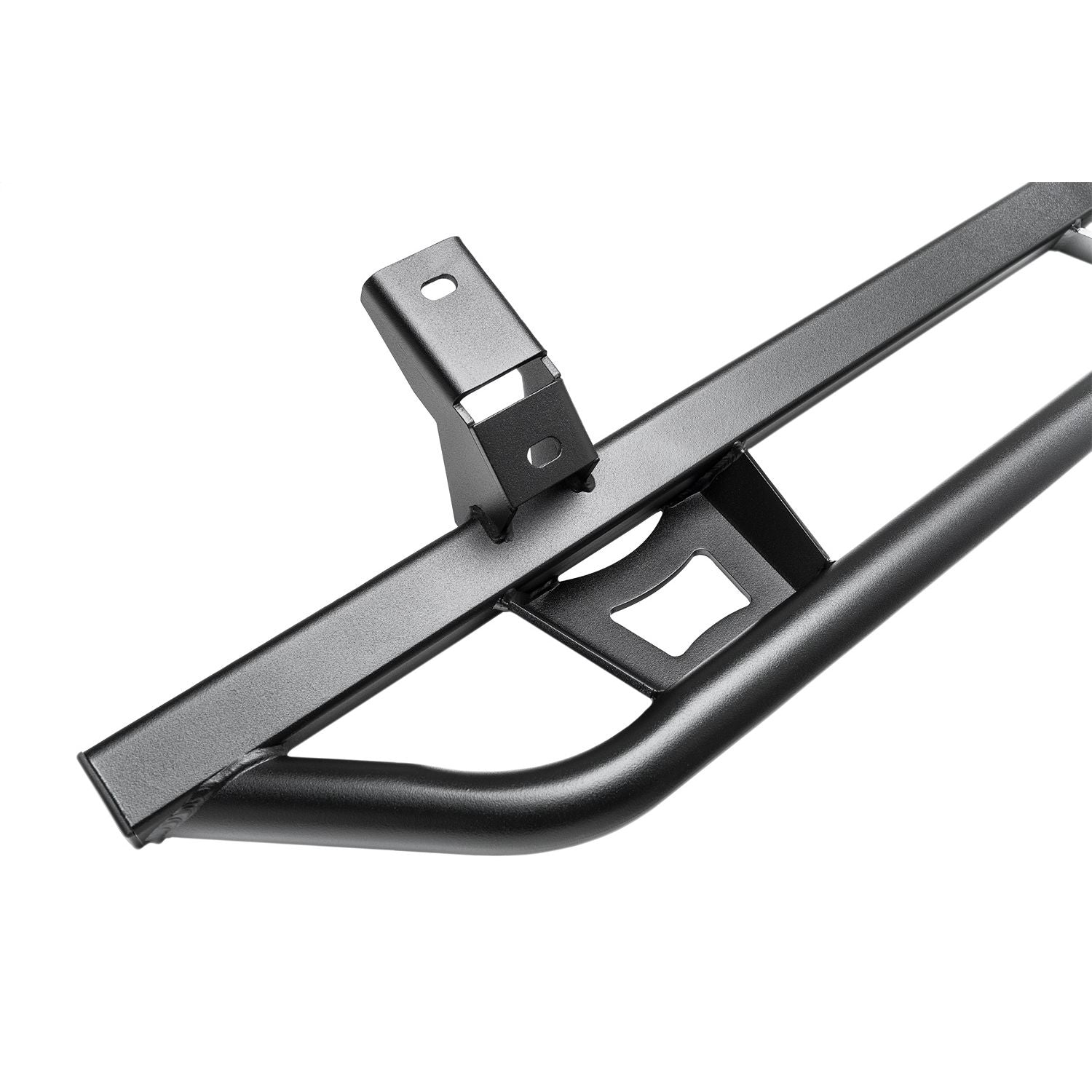 TrailSlider Step System-Cab Length (2 Steps per Side)-2020-2024 Jeep Gladiator-Textured Black | The N-FAB TrailSlider is a body-mount rock slider that features 3/16 in. heavy gauge steel tubing and gussets that will hold up to extreme conditions. The TrailSlider also comes powder-coated in our durable, textured black finish. Easy to install with no special tools required, the new N-FAB TrailSlider is the ultimate upgrade for any 4-Runner, Wrangler, Tacoma, Colorado, and Ranger. | 5 year Finish Warranty; Lifetime Workmanship Warranty