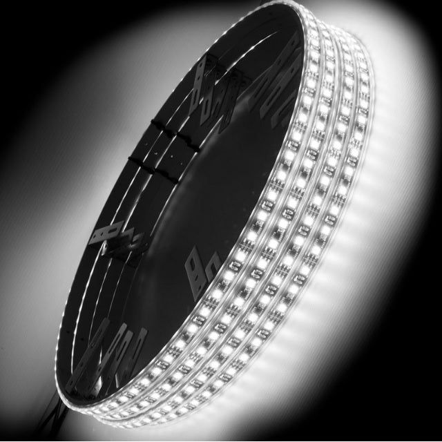 The effect is a large ring of light which accents custom wheels and stands out at events. Our oversized 16.5” diameter is the largest on the market and fits oversized brakes. We offer single-row LED wheel lights for nearly any size of wheels. Our double-row LED wheel accommodates 19” wheels or larger. Compared to our standard LED wheel rings, these wheel rings offer twice the brightness. The ORACLE Lighting illuminated LED wheel rings are sure to make the street your stage with a bold and bright glow that will be sure to turn heads.