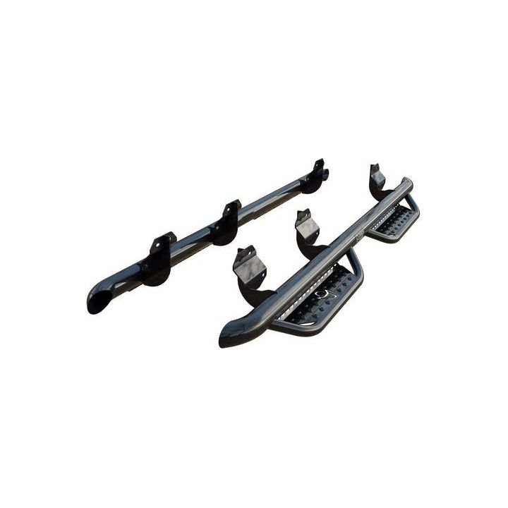 Ranch Hand Running Steps offer the same strength and resilience of Ranch Hand's front and back protection. Offered in 4 step, our Ranch Hand Running Steps offer are built from the same high quality materials as the rest of our products. The unique punched plate pattern on the foot plate, which matches the grille pattern of the truck brand, allows dirt to fall through to avoid mud build up on the top of the steps.