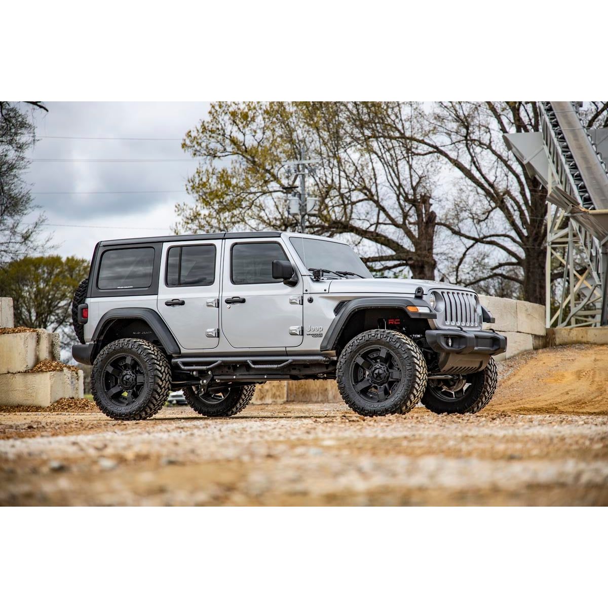 Elevate Your JL's Stance and Performance: Give your Jeep JL a noticeable boost with Rough Country's 1.25-Inch Body Lift Kit. This premium kit delivers more lift than standard 1-inch options, offering increased ground clearance and a more aggressive, trail-ready profile.Factory Fit and Ride Quality: Engineered for seamless integration, the 1.25-inch spacers nest perfectly with your factory body mounts. This smart design maintains proper body-to-frame alignment while preserving the noise and vibration dampening characteristics of the OEM setup, so you enjoy a smoother, quieter ride.Clean, OEM-Style Appearance: Included rear bumper brackets ensure the bumper is properly relocated for a flush, factory-style finish post-lift. No sagging, no awkward gaps, just a clean, consistent look all around.Durability You Can Trust: Built to last, the body lift pucks are constructed from fiberglass-reinforced nylon for exceptional strength and long-term durability, whether you're cruising the highway or hitting the trails.Backed by Rough Country's Limited Lifetime Replacement Guarantee, this kit is a solid investment in both form and function. Improved Ground Clearance: Gain the extra height needed to tackle off-road terrain with confidence.