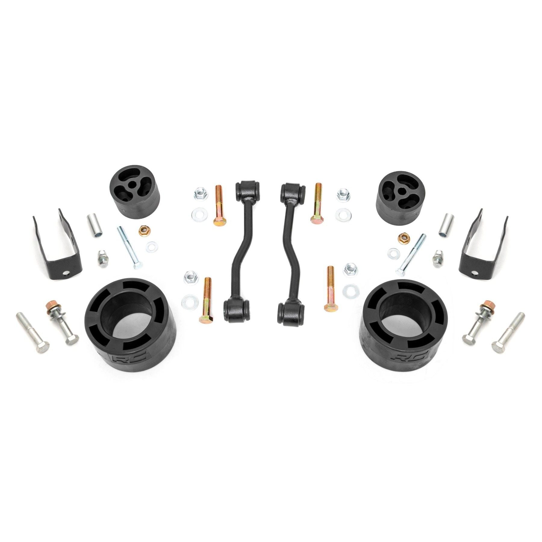 Take your Jeep Gladiator JT to the next level with Rough Country's 2.5-inch Suspension Lift Kit! Designed specifically for the Gladiator, this kit delivers the perfect blend of style, performance, and functionality while giving you the clearance to easily run 35-inch tires. Whether it's the daily drive or the toughest trails, this lift kit is built to perform.Level Up Your Ride: Eliminate that factory nose-dive and give your Gladiator a bold, leveled stance. This lift kit raises the front to match the rear, delivering a rugged look and a confident presence on or off the trail.Conquer Tough Terrain: Gain the extra ground clearance you need to tackle rocks, ruts, and steep inclines with confidence. The 2.5-inch lift improves approach, breakover, and departure angles, ensuring your Jeep is ready for any adventure.Performance-Driven Design: This kit doesn't just add height, it enhances your Jeep's capability. With durable front and rear coil spacers, shock extensions, sway bar links, and bump stops, you'll retain your factory coils and shocks for the comfortable ride Jeep intended while enjoying added performance where it matters most.Ready for Bigger Tires: Make room for aggressive upgrades. This kit clears up to 35-inch tires, giving your Gladiator a tougher stance and improved off-road traction without compromising ride quality.Hassle-Free Installation: Designed for a straightforward bolt-on process, this lift kit requires no cutting or drilling. Spend less time in the garage and more time behind the wheel exploring the trails.Custom Shock Options: Fine-tune your ride with a range of premium shock upgrades. Choose from N3 nitrogen-charged shocks, V2, or the performance M1 shocks for a suspension setup tailored to your driving style. Hassle-Free Installation: Simple bolt-on design with no cutting or drilling required.