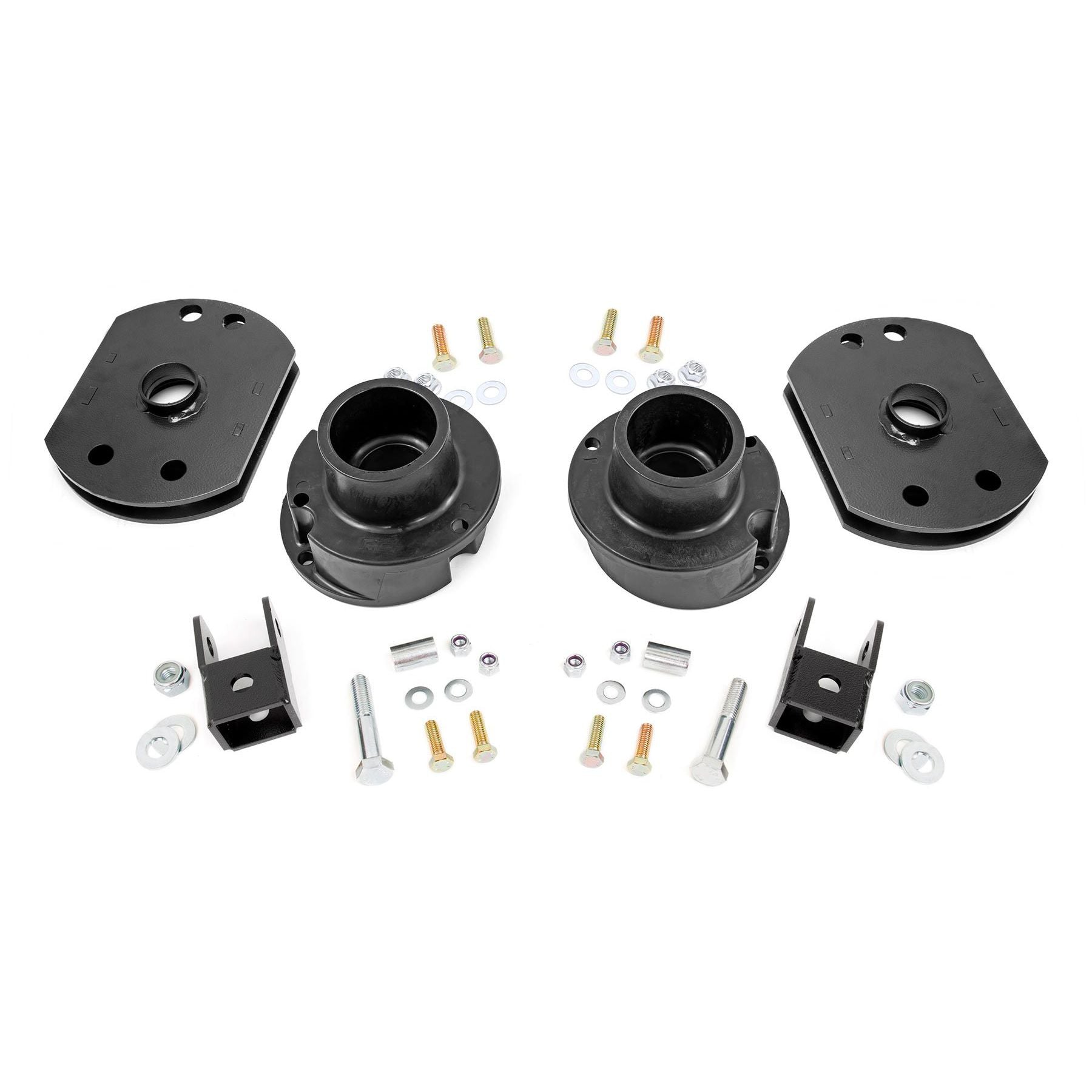 Lift, level, and smooth out your ride with Rough Country's new and improved 2.5-inch RAM 2500 Leveling Kit. Engineered to fit RAM trucks equipped with front radius arm suspension setups, this easy-to-install kit gives a big boost at an unbelievable price!Rough Country's durable coil spring spacers have been expertly redesigned to match the factory geometry of your truck, including the angle of the coil mounts and position of the rubber isolator, which perfectly indexes both springs to eliminate any chance of coil bowing. This kit has also been upgraded to include shock extension brackets that allow you to reuse your factory shocks at the optimum angle for your new lifted truckThis kit also features a lightning fast, 100% bolt-on installation process that couldn't be easier or less invasive to your new vehicle. Includes Rough Country's Lifetime Replacement Warranty. Easy bolt-on installation