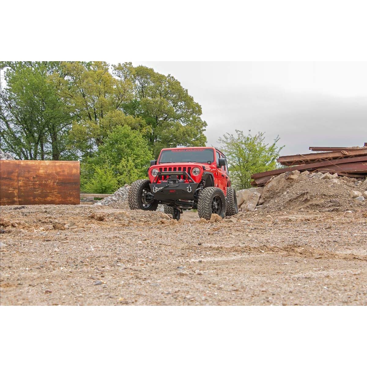 When it comes to your four-door Jeep JL Unlimited, we know you need a lift that won't let you down. Our 3.5 Inch Lift Kit delivers legendary off-road prowess and smooth on-road handling.Increased Ground Clearance: Get ready to conquer those rocky trails and rough terrains like a boss! Our lift kit gives your Jeep Wrangler Unlimited the extra inches it needs to clear obstacles with ease.Front-to-Rear Leveling: Tired of that nose-down stance? Ditch the unbalanced Jeep life with our leveling kit. We bring symmetry to your ride, lifting the front to match the rear, giving you a smooth and steady journey.Tuned Coil Springs for Superior Performance: Your Jeep's handling and ride quality matter, and we get that. Our coil springs come dialed in with OEM spring rates, delivering top-notch handling and a plush ride. Our linear coil rate springs take it up a notch, ensuring impeccable handling and stability, even when the terrain gets wild.Additional Tire Clearance: Who doesn't want bigger, beefier tires? Our lift kit makes room for larger tires (up to 35 inches), giving your Jeep a more aggressive look that will turn heads on and off the road!Heavy-Duty Track Bar: Our included track bar is an absolute beast, constructed from forged solid steel for unparalleled strength and durability. With its massive 1.25-inch outside diameter and rugged OEM-style rubber bushings, it's built to handle anything the off-road throws its way.Durable CV Driveshaft: The factory shaft does not have adequate clearance once lifted and will cause damage to the Rzeppa joint if the driveshaft spins while the suspension is fully flexed or articulated. Rough Country's extended Front CV Driveshaft eliminates this issue allowing you to flex your suspension with more peace of mind!Adjustable Control Arms: The included Rough Country X-Flex Control Arms feature a massive 2.5in diameter body and huge 1.25 threads. The provided X-Flex Joints offer a considerable range, strength, and safety for off-road applications. Boasting an impressive range of motion, Rough Country's lower control arm flex joints are capable of a staggering thirty-five degrees pivot range.Easy Installation: We know you'd rather be off-roading than in the garage all day. That's why our lift kit is designed for easy installation, so you can hit the trails in no time. Bolt-On Installation: Hassle-free setup with no cutting or welding required for a quick and easy upgrade.