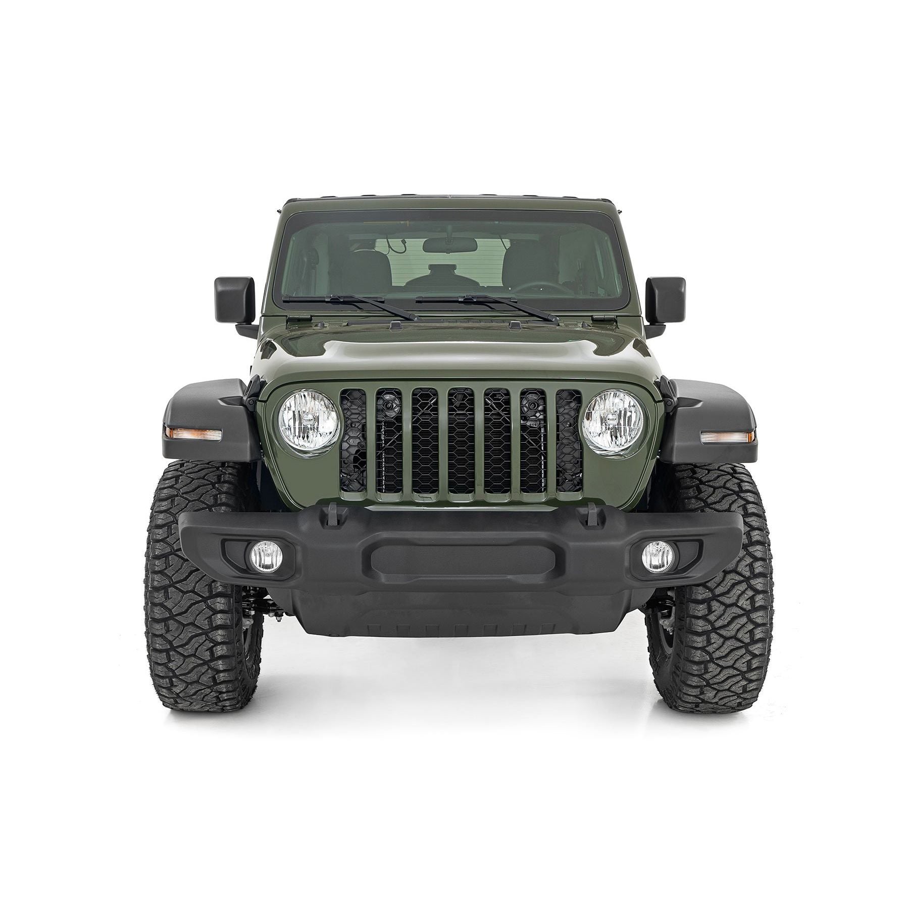 When it comes to your two-door Jeep JL Rubicon, we know you need a lift that won't let you down. Our 3.5 Inch Lift Kit delivers legendary off-road prowess and smooth on-road handling.Increased Ground Clearance: Get ready to conquer those rocky trails and rough terrains like a boss! Our lift kit gives your Jeep Wrangler Rubicon the extra inches it needs to clear obstacles with ease.Front-to-Rear Leveling: Tired of that nose-down stance? Ditch the unbalanced Jeep life with our leveling kit. We bring symmetry to your ride, lifting the front to match the rear, giving you a smooth and steady journey.Tuned Coil Springs for Superior Performance: Your Jeep's handling and ride quality matter, and we get that. Our coil springs come dialed in with OEM spring rates, delivering top-notch handling and a plush ride. Our linear coil rate springs take it up a notch, ensuring impeccable handling and stability, even when the terrain gets wild.Additional Tire Clearance: Who doesn't want bigger, beefier tires? Our lift kit makes room for larger tires (up to 35 inches), giving your Jeep a more aggressive look that will turn heads on and off the road!Heavy-Duty Track Bar: Our included track bar is an absolute beast, constructed from forged solid steel for unparalleled strength and durability. With its massive 1.25-inch outside diameter and rugged OEM-style rubber bushings, it's built to handle anything the off-road throws its way.Durable CV Driveshaft: The factory shaft does not have adequate clearance once lifted and will cause damage to the Rzeppa joint if the driveshaft spins while the suspension is fully flexed or articulated. Rough Country's extended Front CV Driveshaft eliminates this issue allowing you to flex your suspension with more peace of mind!Easy Installation: We know you'd rather be off-roading than in the garage all day. That's why our lift kit is designed for easy installation, so you can hit the trails in no time. Hassle-Free Installation: Bolt-on design ensures a straightforward install with no cutting or welding required.