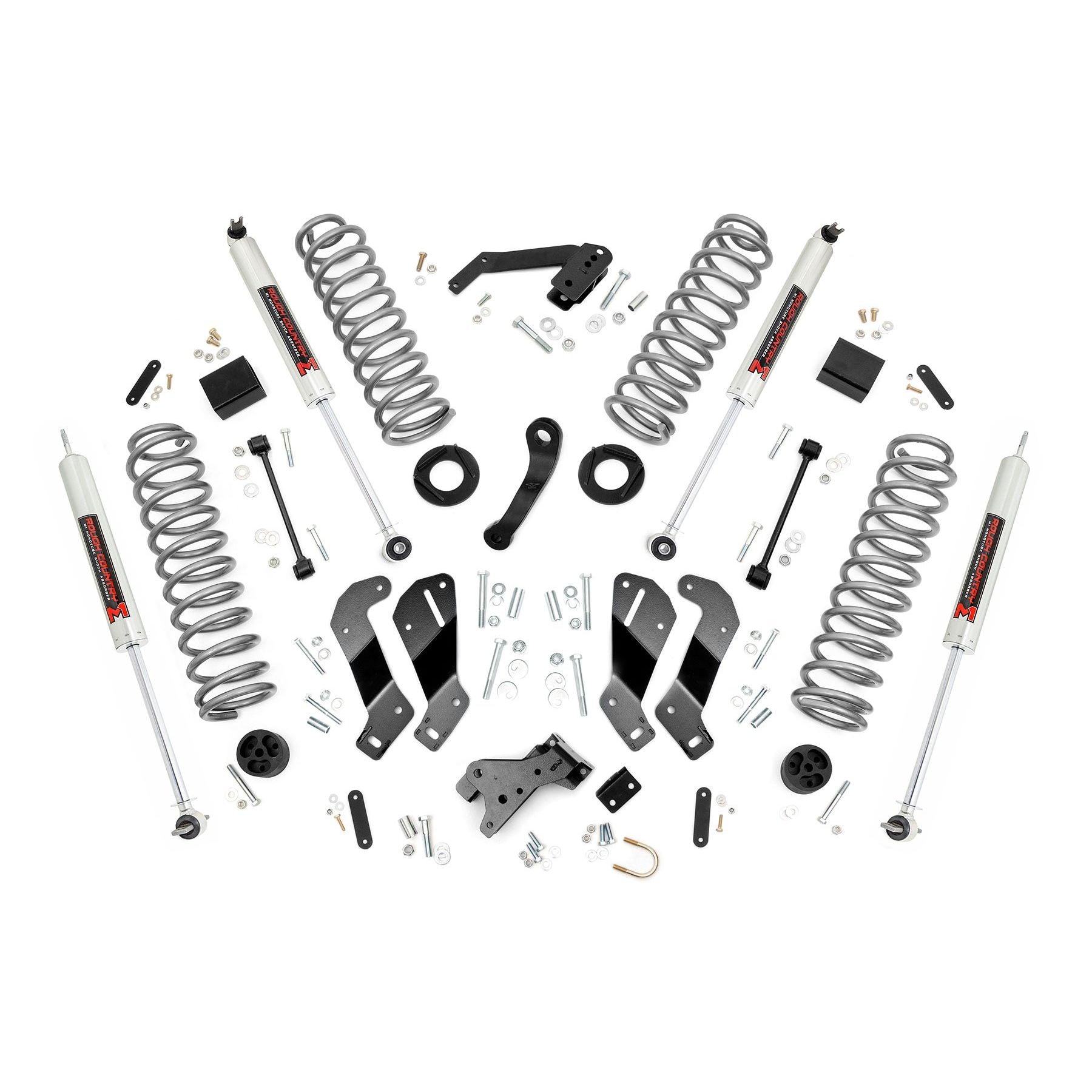 Experience the ultimate ride and handling with Rough Country's 3.5-Inch Control Arm Drop Kit for Jeep JK. This all-inclusive upgrade delivers smooth handling, enhanced ride quality, and aggressive off-road capability for a complete suspension transformation that performs on and off the road.Superior Lift & Clearance: Front and rear lifted coil springs provide the clearance needed to run up to 35x12.50 tires while maintaining a balanced, commanding stance. These factory-tuned springs are calibrated to preserve stock ride comfort even with the added lift.Custom Shock Options: Tailor your suspension to your driving style with nitrogen-charged N3 shocks, V2, M1 Monotube, or premium M1R shocks. From plush on-road comfort to maximum off-road performance, this kit allows you to dial in your perfect ride.Optimized Suspension Geometry: Engineered control arm drop brackets reposition your factory control arms to restore ideal suspension geometry. This ensures smoother handling, improved alignment, and enhanced stability on any terrain.Improved Coil Efficiency: Rear coil correction plates adjust the coil spring angle by 10 degrees, optimizing suspension performance and extending coil lifespan under flex and articulation.Confidence You Can Count On: Backed by Rough Country's Limited Lifetime Replacement Warranty, this lift kit is built for long-term durability and peace of mind. Simple Bolt-On Installation: Hassle-free, no-cutting installation gets you back on the trail faster.