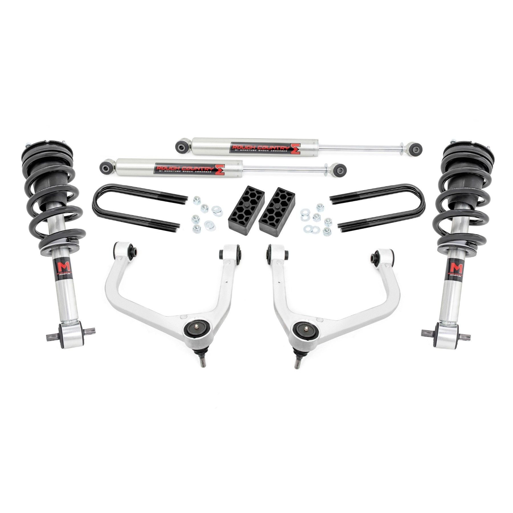 Explore New Heights: GM's fourth-generation Silverado 1500 features an impressive all-new design that built from the ground up, with aggressive angles and head-turning stylings that fit in beautifully when transformed with Rough Country 3.5-inch Suspension Lift.Innovative Design and Construction: When changing a vehicle's suspension, the key to preserving ride quality is keeping the geometry of all suspension components as close to their factory angles as possible. Rough Country's 3.5in lift features a set of forged aluminum upper control arms to provide the correct suspension geometry in our most durable control arm to date! This perfect-height lift is a great choice for anyone who wants more than a simple level but doesnΓÇÖt quite want the full height of a 6-inch option. This kit lifts and levels the front of the vehicle with the rear, offering enough increased ground clearance to run up to 33" tires with an improved, aggressive look. We didn't want to limit you to one standard kit. Rough Country's 3.5-inch kit is configurable with all the shock options that we offer. This allows you to choose which shock series you want! Ranging from our nitrogen-charged N3 shocks to our Vertex reservoir shocks the power to choose is in your hands.Installation: Requiring the use of a strut compressor to install, an estimated timeframe of 5-6 hours is recommended to complete this full installation. This full kit can be installed at home and can be completed efficiently and quickly!Limited Lifetime Replacement Warranty: Rough Country's 3.5" Suspension Lift Kit is backed with a limited lifetime replacement warranty towards manufacturer defects. As such, the product is protected from structural and workmanship damage after the date of purchase. With our industry-leading warranty give yourself peace of mind when using Rough Country's Suspension products! Balanced Ride Height: Achieves a perfectly leveled stance by lifting the front of your vehicle 3.5 inches and the rear 2.5 inches.
