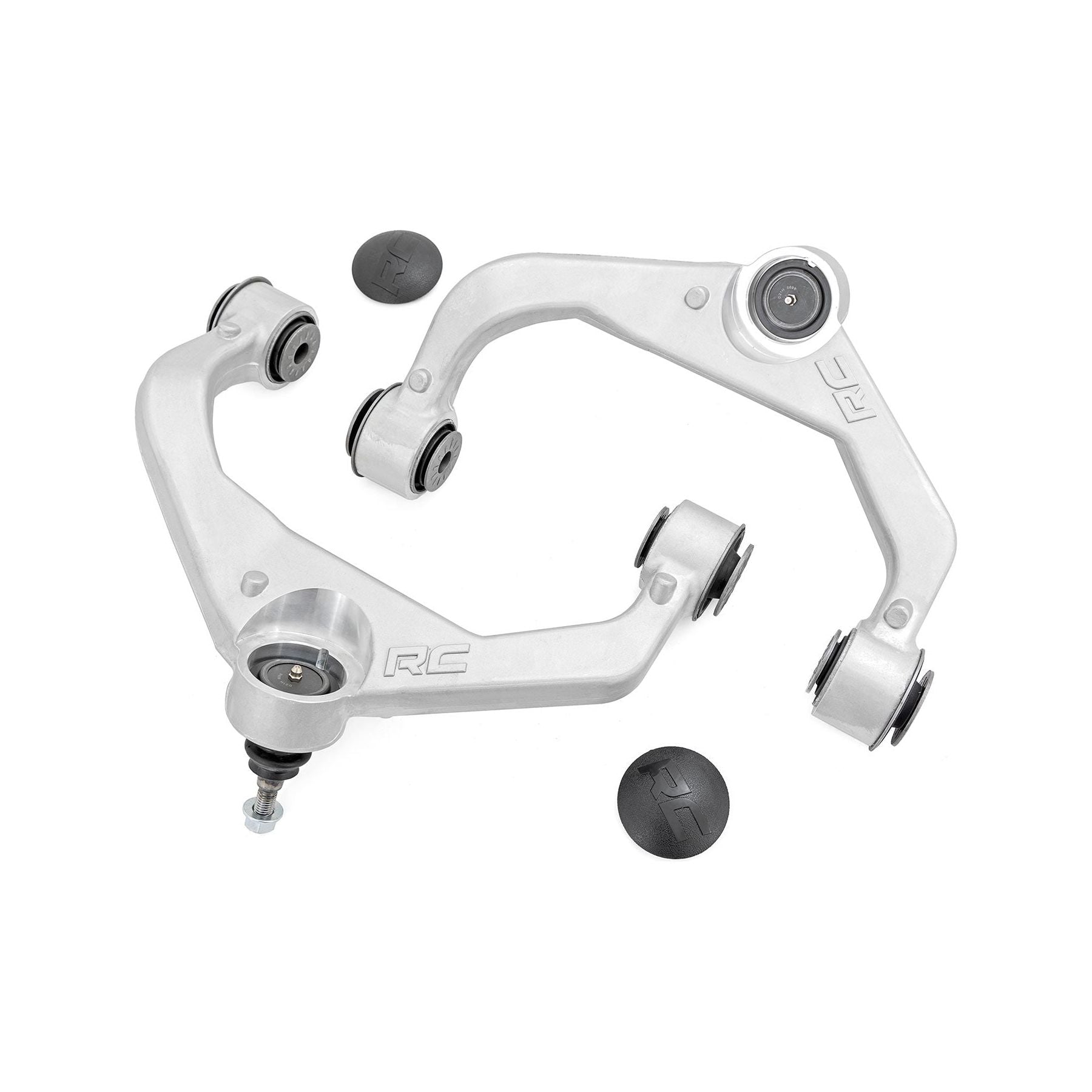 High Strength Ball Joints. Rough Country’s Forged Upper Control Arms use POM ball joints which reduces metal-to-metal contact for less maintenance and longer service life versus standard or OE replacements. These Ball joints feature a POM ball race for an extremely low co-efficient of friction and an oversize ball diameter reduces load and improves range of motion in a fully greaseable design. Rough Country’s Forged Upper Control Arms also feature durable rubber bushings rubber bushings for superior quality and durability.