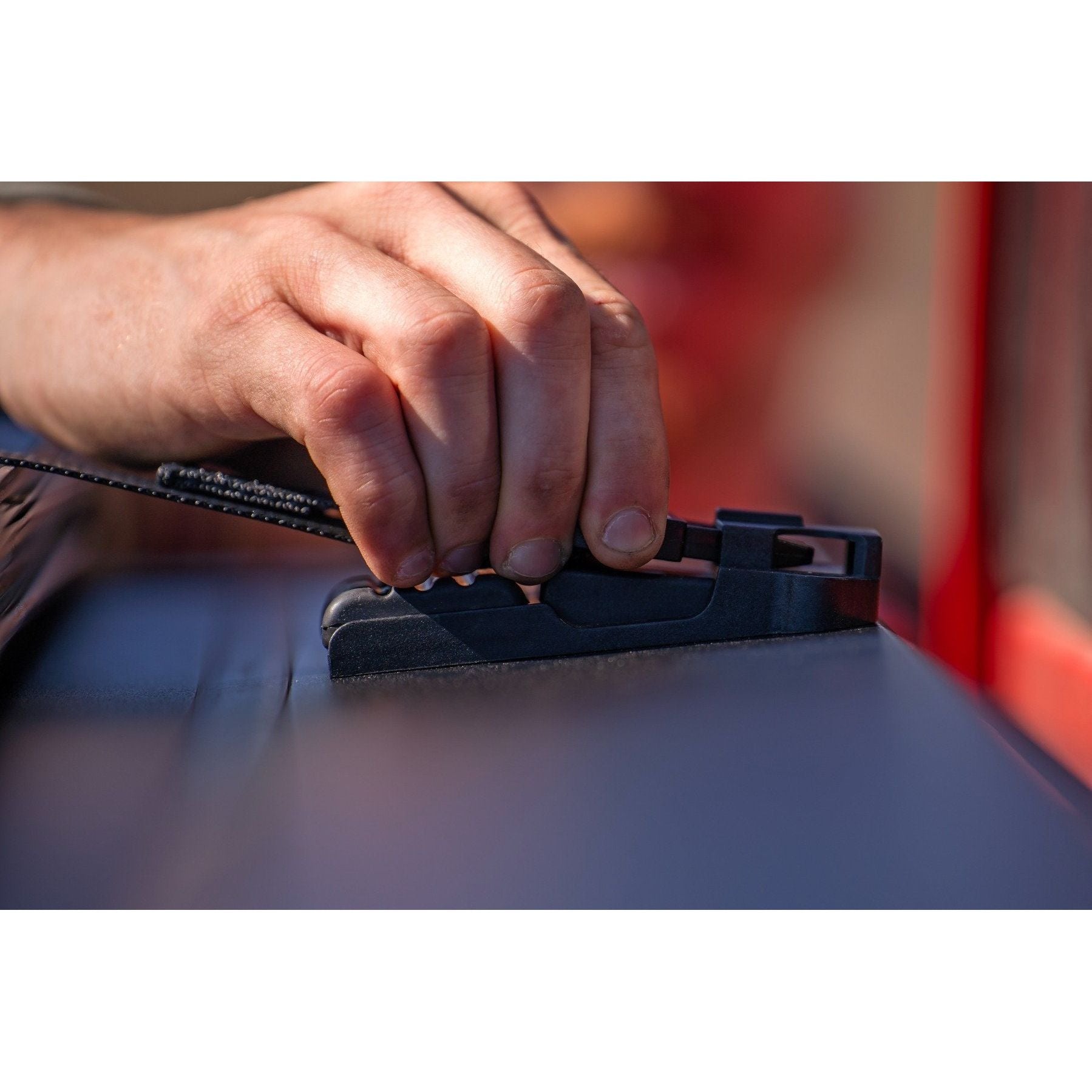 Built to Last: Our bed cover is crafted from lightweight aluminum and boasts a resilient powder coat finish. This coating resists corrosion and wear, ensuring that your truck bed maintains its pristine appearance even in harsh weather conditions.