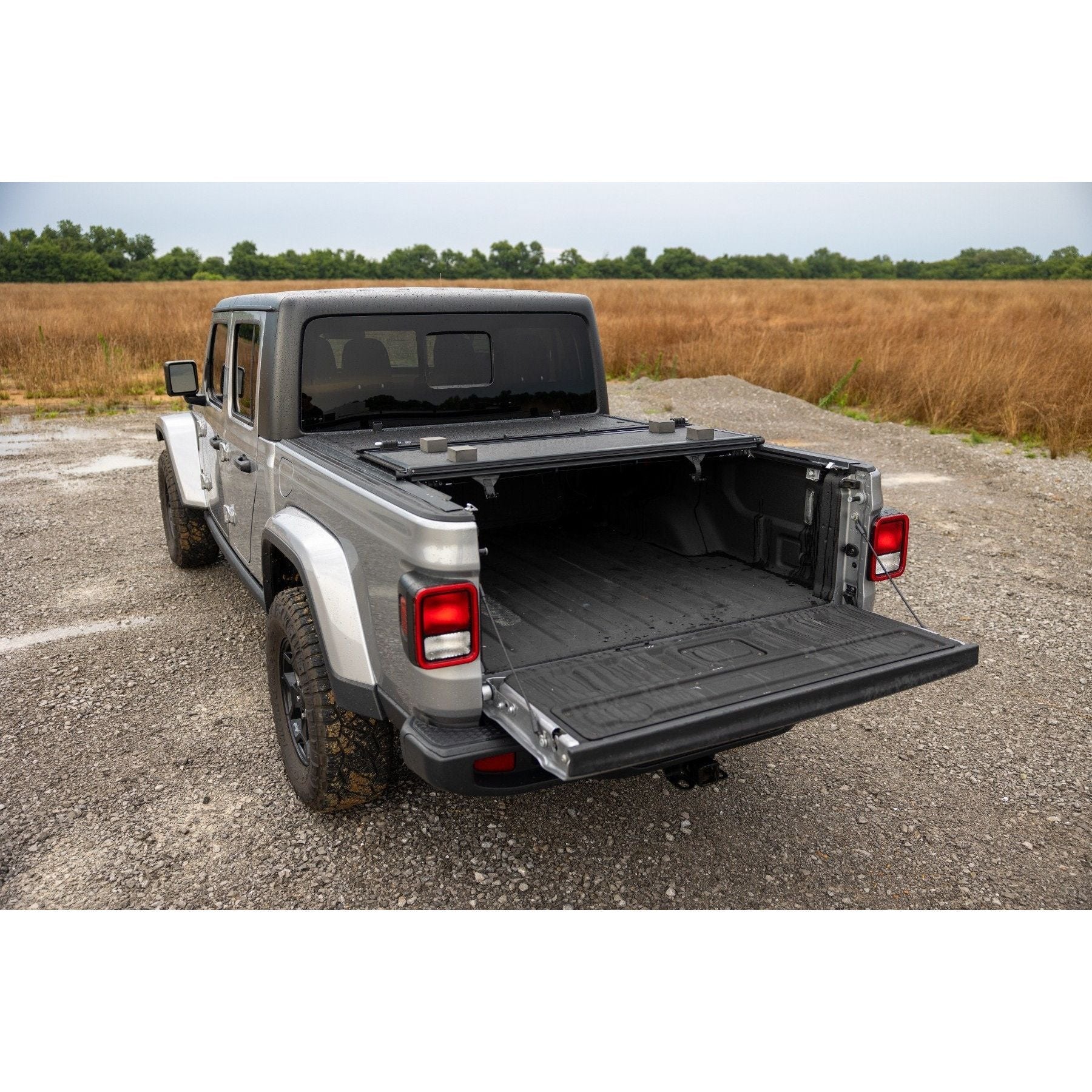 FITMENT: 5' Bed Jeep Gladiator JT 4WD (2020-2024) I California Residents: Prop65 Warning. I Rough Country's Hard Low-Profile Bed Cover is built for adventure. This tri-fold tonneau cover delivers a streamlined design that enhances your truck's off-road look while safeguarding your gear. Enjoy the peace of mind that comes with Rough Country's quality construction and easy access features. Here's what makes this tri-fold tonneau cover the ultimate winner: