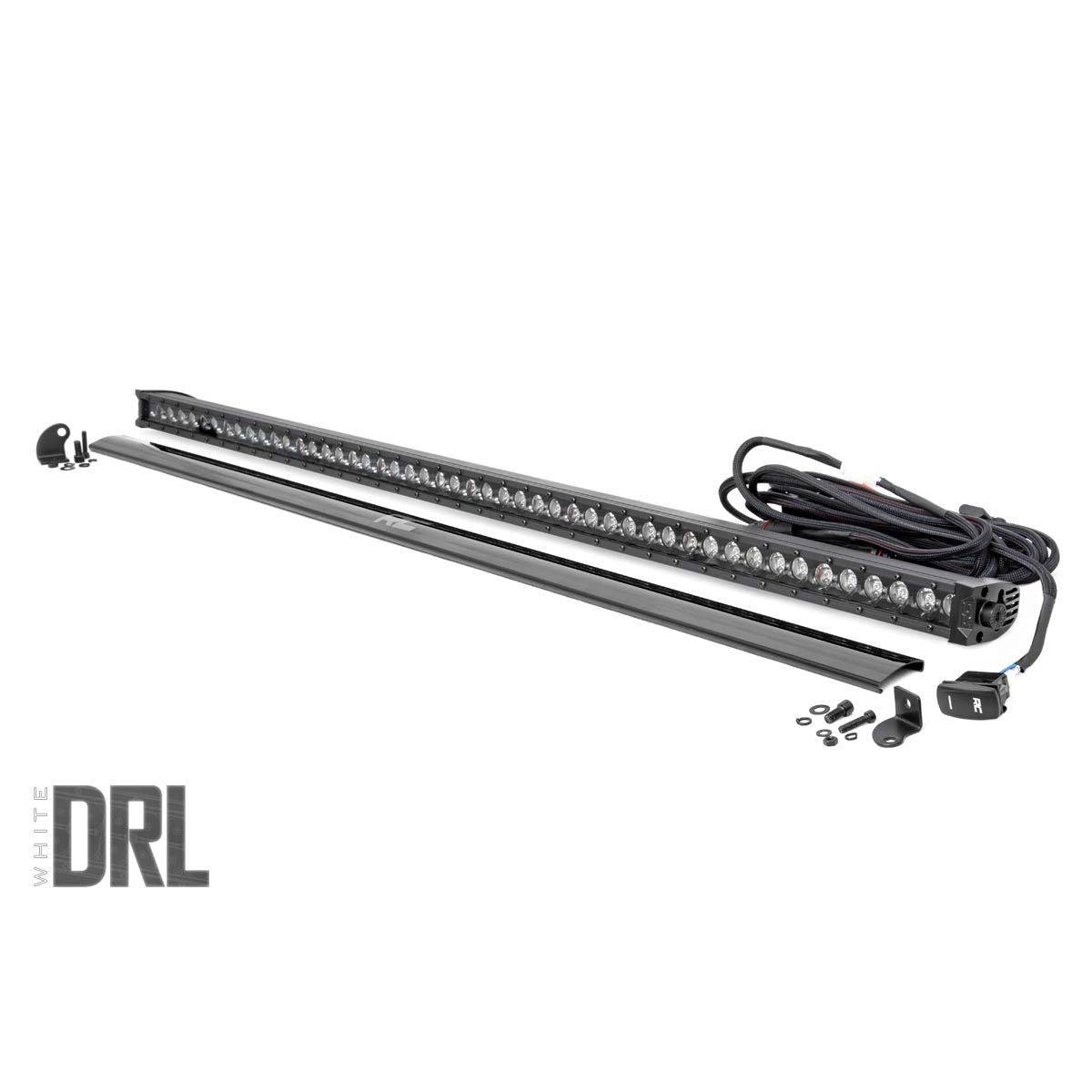 Command the Dark: Light up the night and stay on the trails longer with Rough Country's sleek 50-inch Single Row CREE LED Light Bar. This powerful light bar offers 19,200 lumens of illumination and 60 watts of energy-efficient output, all housed in a stylish, modern frame. Featuring 48 high-intensity 5-watt CREE LEDs, it delivers superior brightness and durability for any adventure.The sleek black panel design complements vehicles with black accents, such as grilles, wheels, bull bars, or steps. Designed for all-weather performance, this light bar comes with a durable die-cast aluminum housing, ensuring maximum strength and heat dissipation. It also backed by an IP67 waterproof rating, providing reliable performance even in harsh conditions.This light bar contains 24 cool white daytime running LEDs for enhanced visibility and safety. Installation is made simple with the included premium, flat-wound wiring harness, complete with an on/off switch for easy operation. The light bar also features Rough Country's Light Bar Noise Silencers, designed to eliminate unwanted hums, whistles, and wind noise typically found in mounted LED light bars.This light bar includes both end mounts and adjustable base mounts, offering multiple mounting options for maximum versatility. A snap-on cover protects the lens, while Moisture Breather technology reduces moisture build-up inside the light. Plus, it all backed by a 3-year warranty for peace of mind. 19200 lumens for bright, powerful illumination.