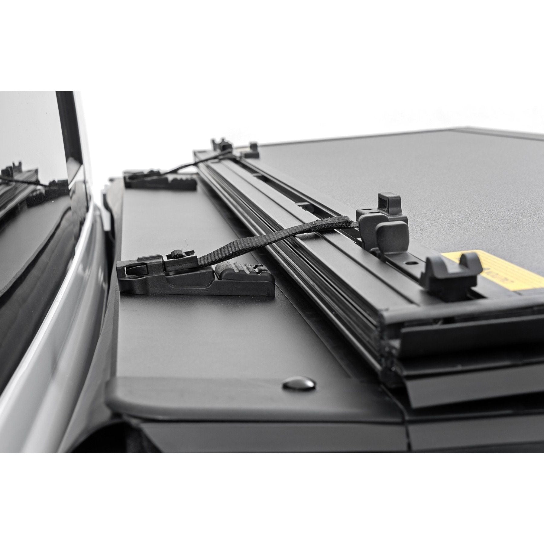 Full-Bed Access: With Rough Country's Tri-fold Flip-up Bed Cover, you can conveniently flip up the cover, allowing full-bed access without the hassle of removing the cover.