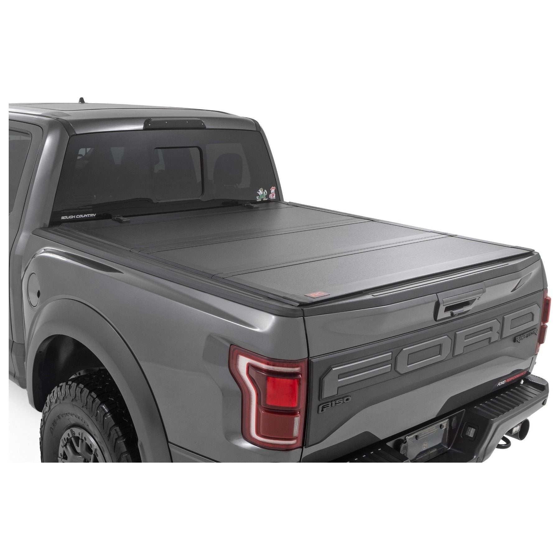 Elevate your F-150’s truck bed and get full access, unmatched durability, and superior weather protection with Rough Country's Hard Tri-fold Flip-up Bed Cover!