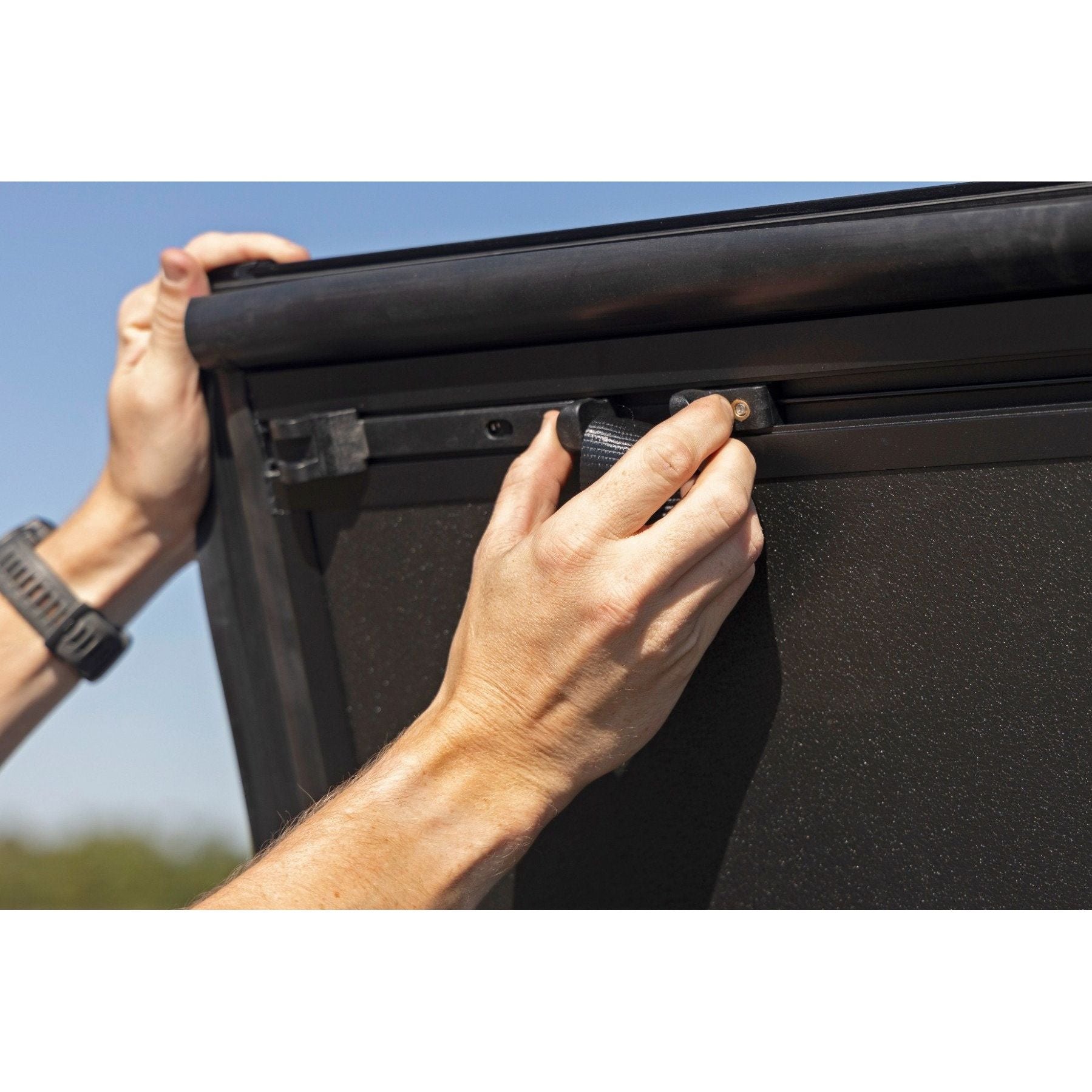 Built to Last: Our bed cover is crafted from lightweight aluminum and boasts a resilient powder coat finish. This coating resists corrosion and wear, ensuring that your truck bed maintains its pristine appearance even in harsh weather conditions.