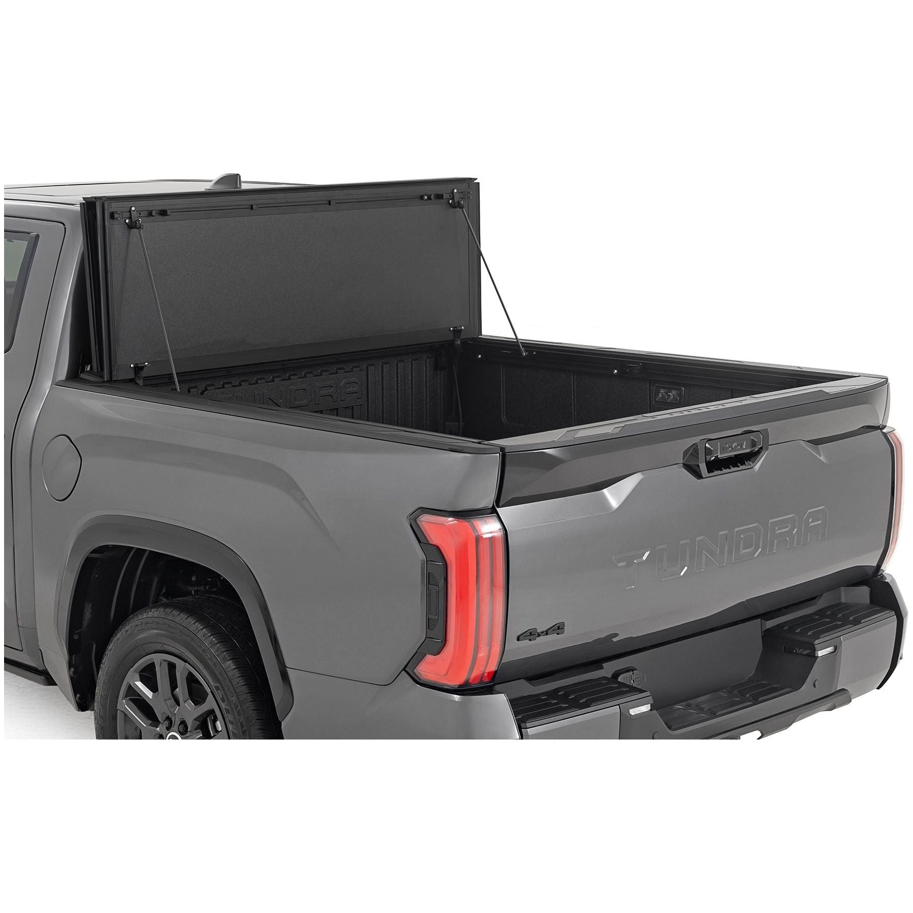 Elevate your Tundra's functionality and appearance with Rough Country's Toyota Tundra Hard Tri-fold Flip-up Bed Cover. Unlike traditional bed covers that limit access to your truck bed, our innovative Flip-up design grants you complete access to your truck bed, making it easier to load and unload large items.