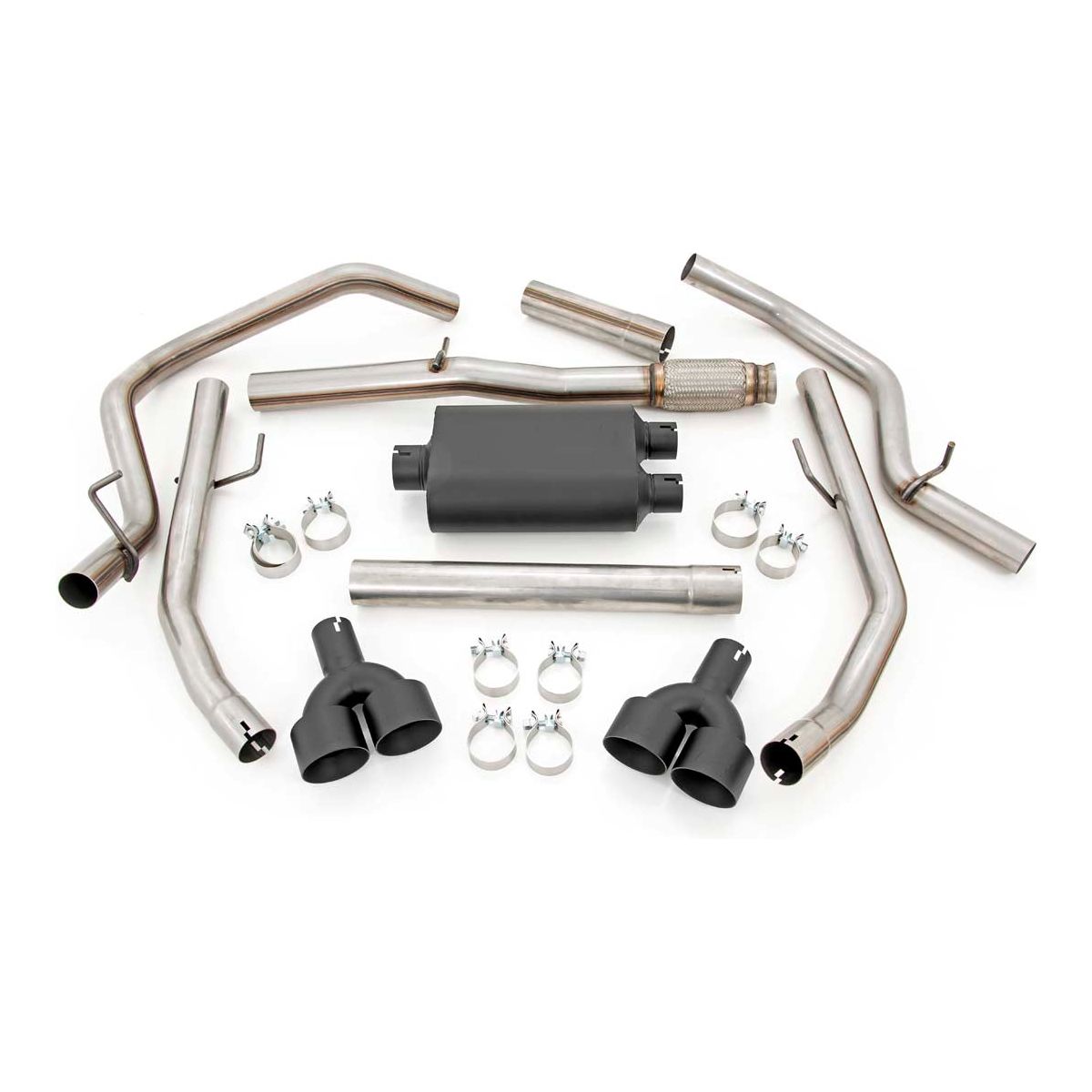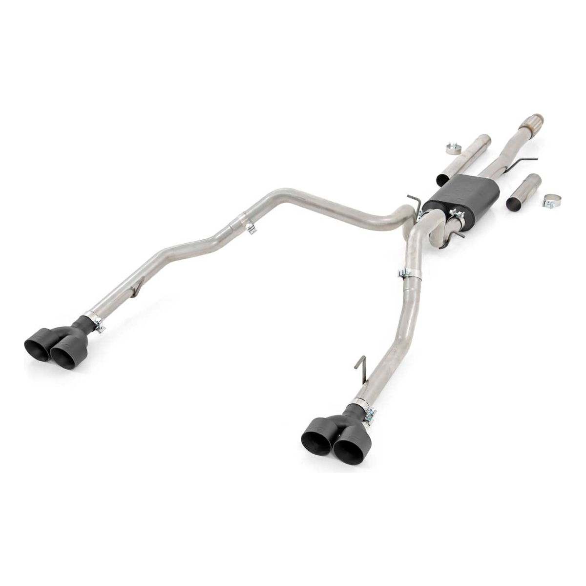 Give your truck an aggressive, throaty growl and killer good looks with Rough Country’s Dual Cat-Back Exhaust System for Chevy Silverado / GMC Sierra 1500 models. These durable exhaust systems are fine tuned to improve air flow and deliver and the perfect aftermarket exhaust note that will put a smile on your face every time you hit the gas.