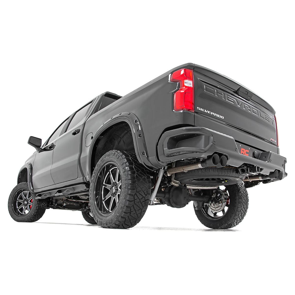 FITMENT: Chevy/GMC 1500 (19-24) I ONLY fits 5.8' and 6.6' Crew Cab and Double Cab models with factory dual exhaust. ONLY fits vehicles with factory rear exit exhaust. Does NOT fit models with factory side exit exhaust. Does NOT fit models equipped with factory Active Exhaust system. This part does not affect vehicle emissions and therefore is not covered by emissions regulations. I