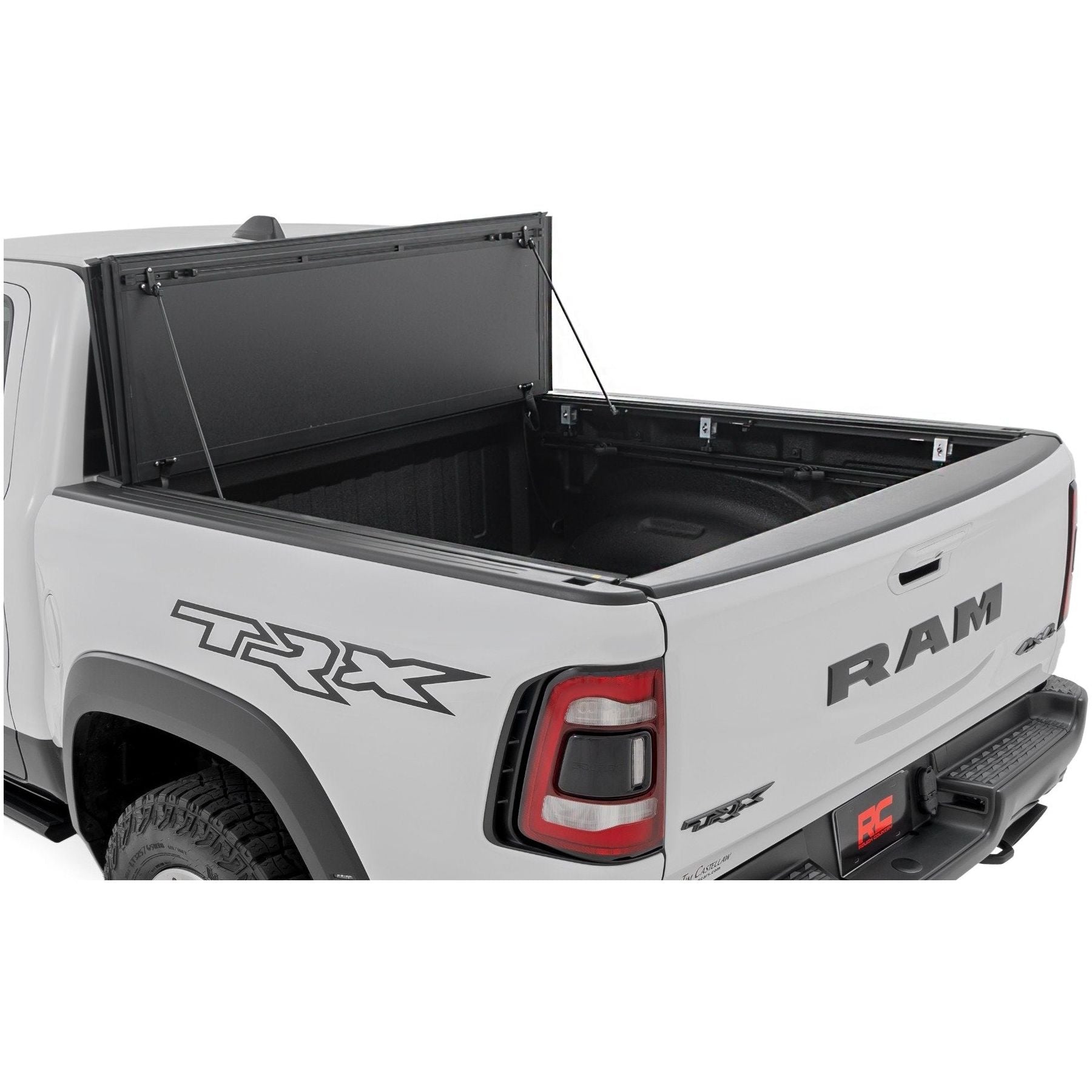 Elevate your Ram’s truck bed and get full access, unmatched durability, and superior weather protection with Rough Country's Hard Tri-fold Flip-up Bed Cover!