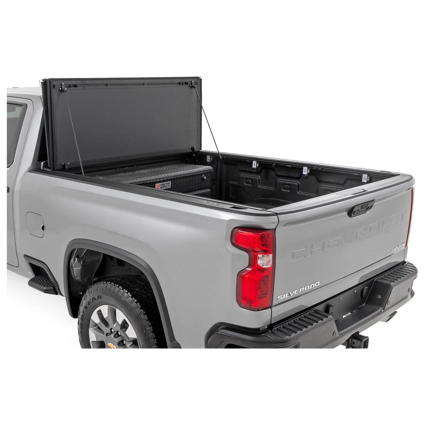 Full-Bed Access: With Rough Country's Tri-fold Flip-up Bed Cover, you can conveniently flip up the cover, allowing full-bed access without the hassle of removing the cover.