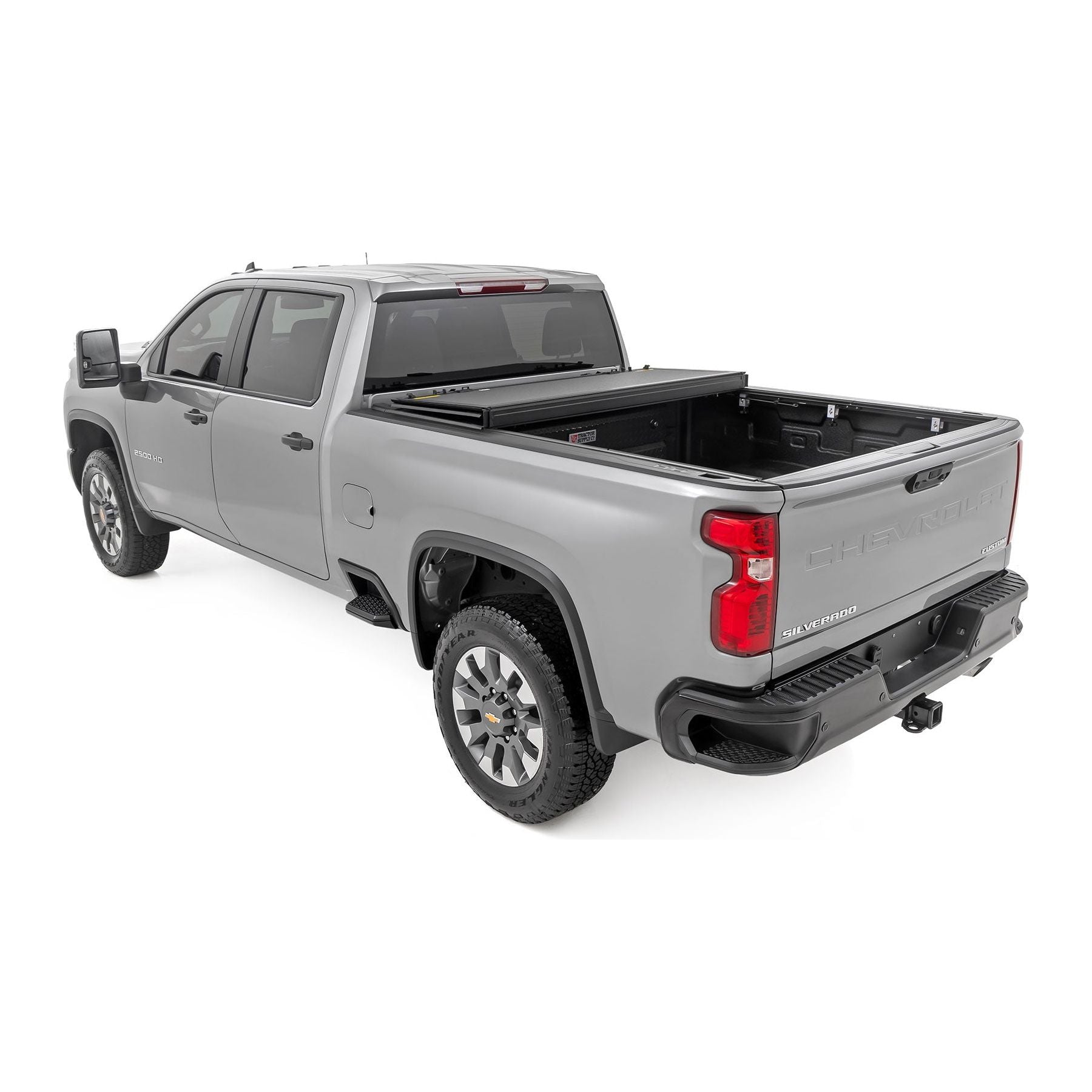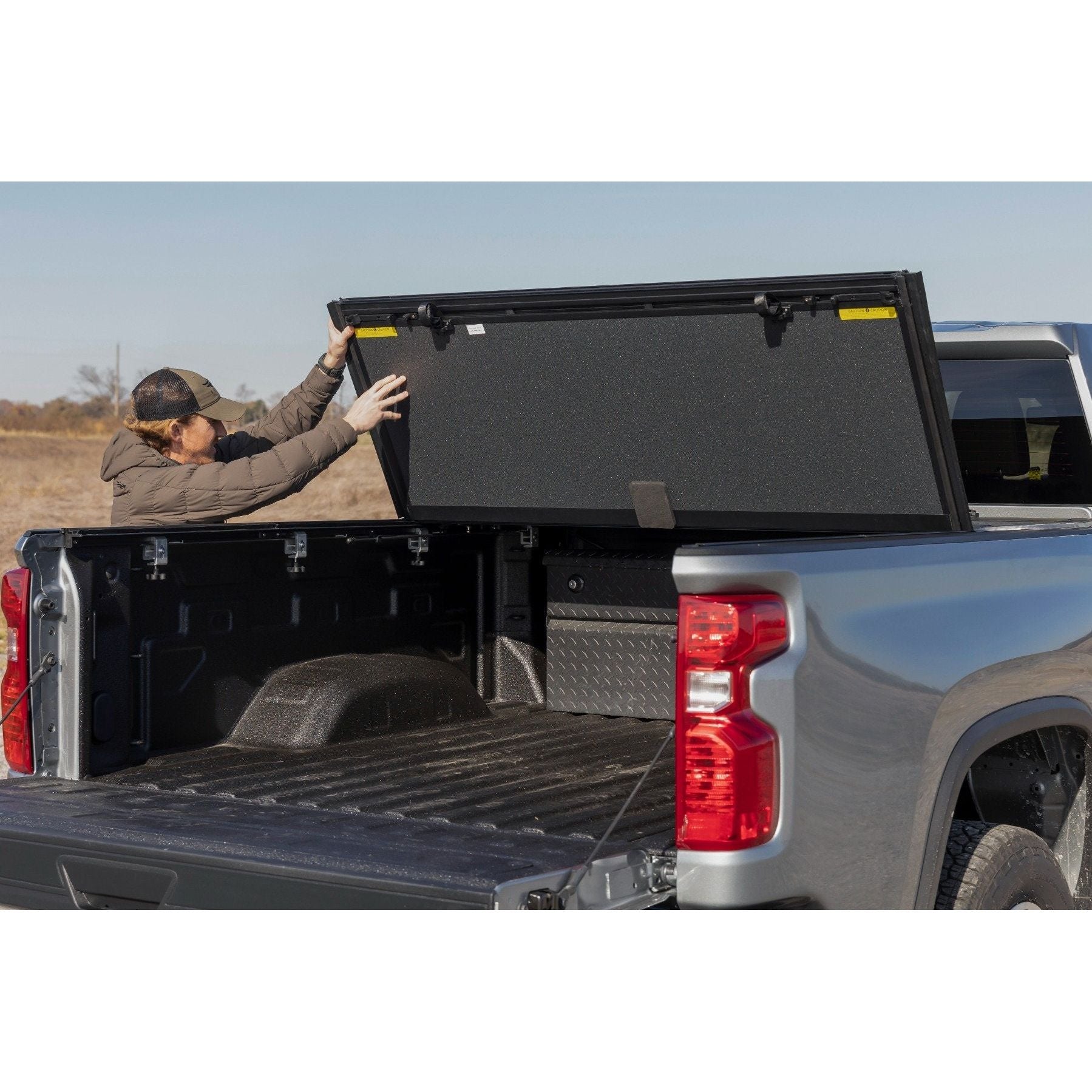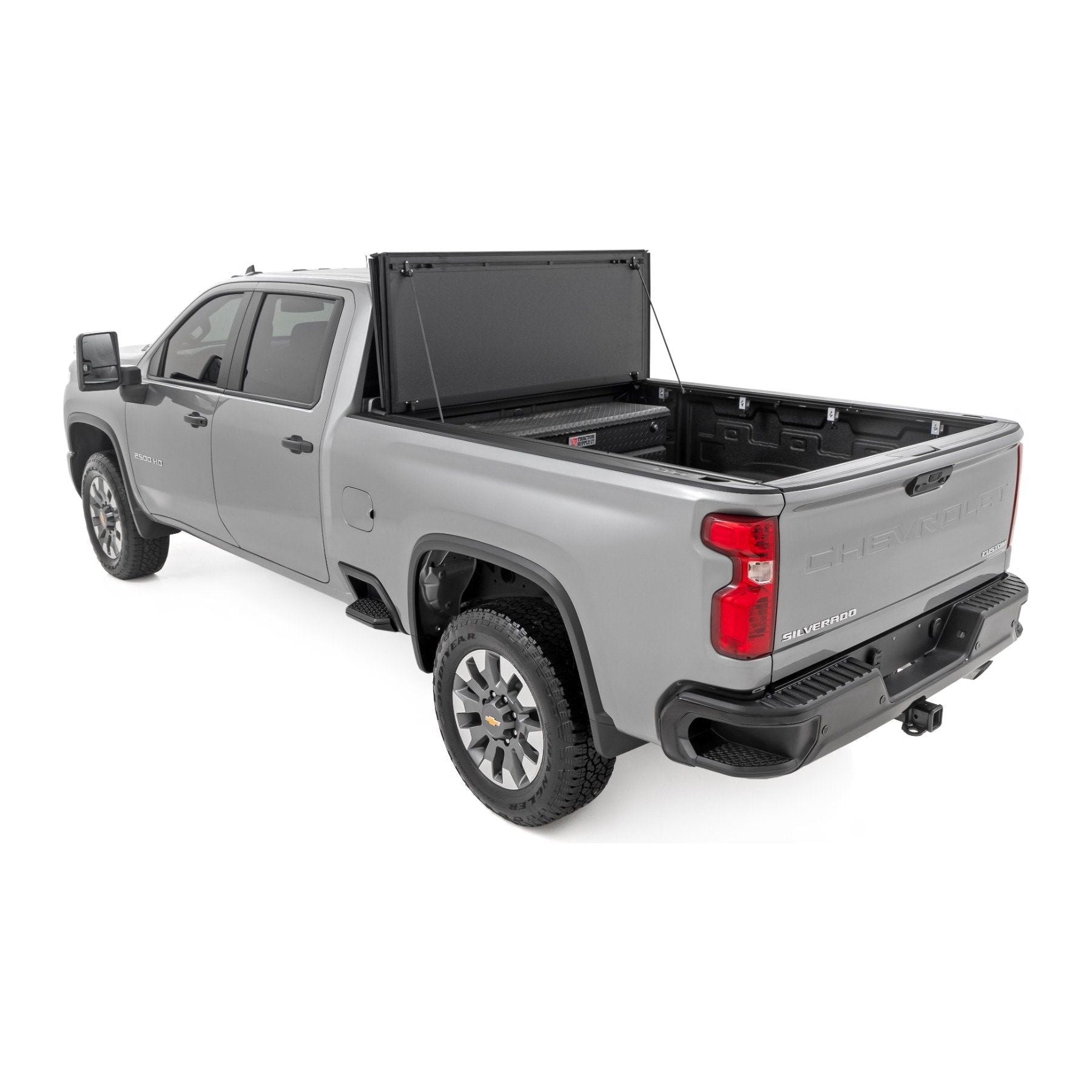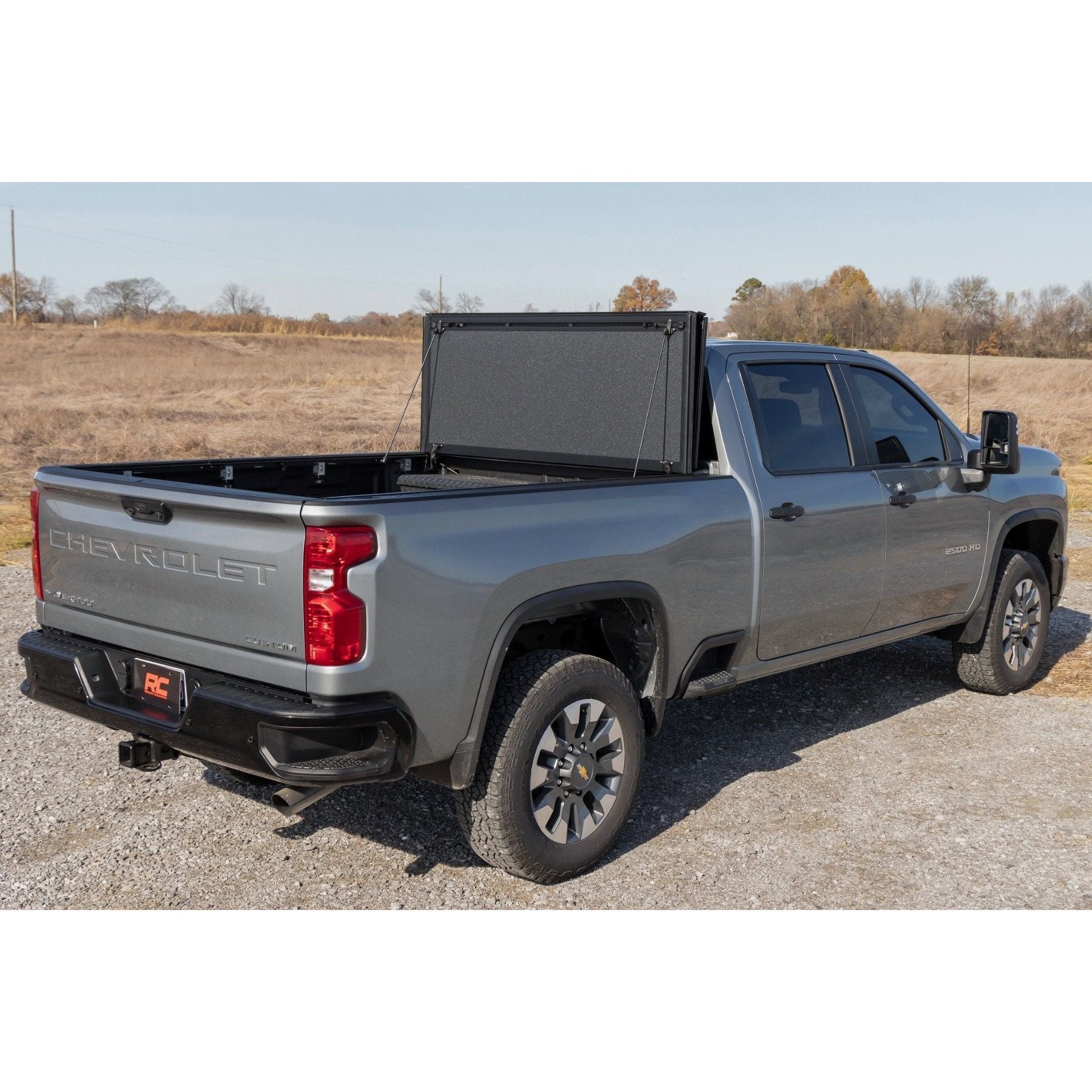 Elevate your GM 2500 HD/3500 HD's functionality and appearance with Rough Country's GM Hard Tri-fold Flip-up Bed Cover. Unlike traditional bed covers that limit access to your truck bed, our innovative Flip-up design grants you complete access to your truck bed, making it easier to load and unload large items.