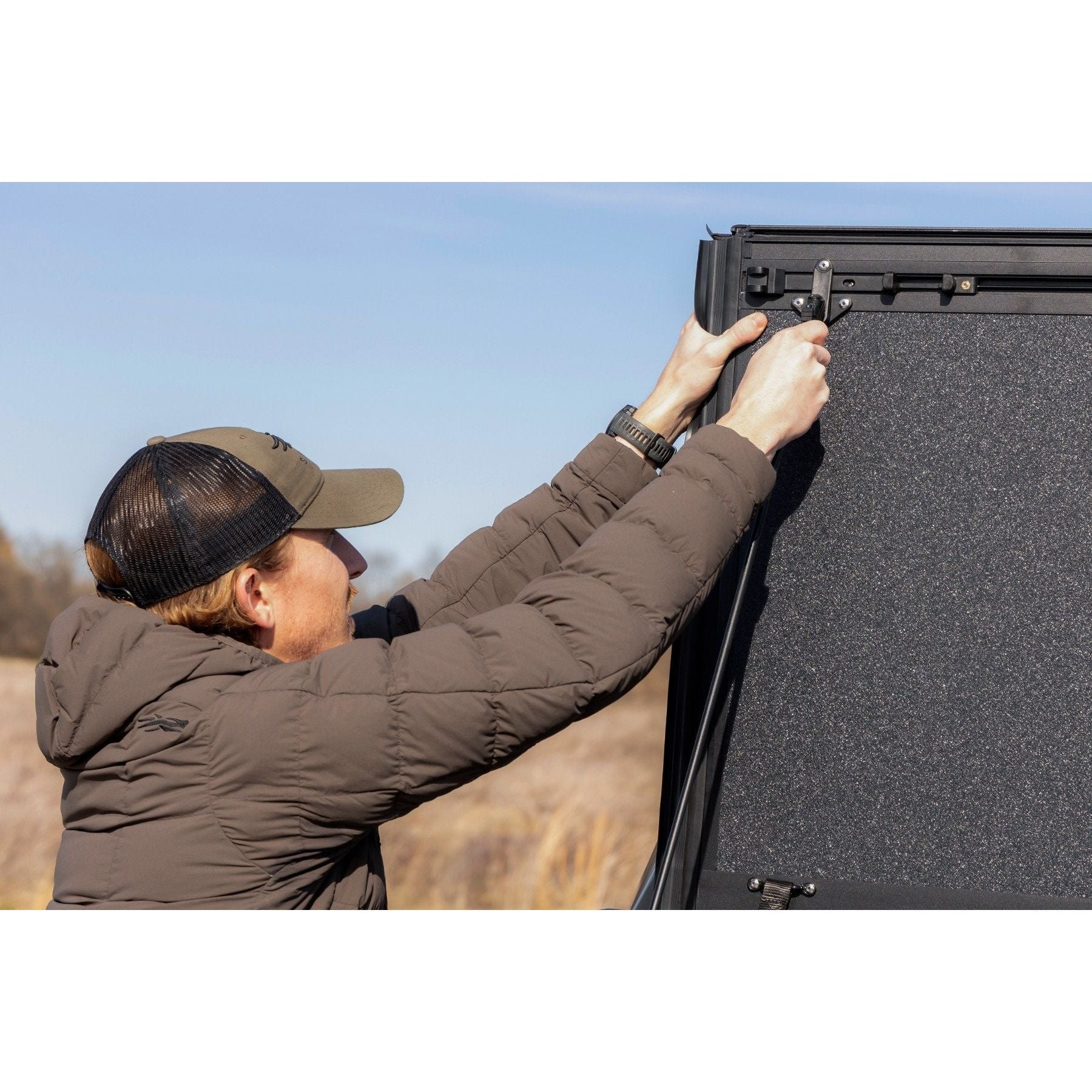 Built to Last: Our bed cover is crafted from lightweight aluminum and boasts a resilient powder coat finish. This coating resists corrosion and wear, ensuring that your truck bed maintains its pristine appearance even in harsh weather conditions.