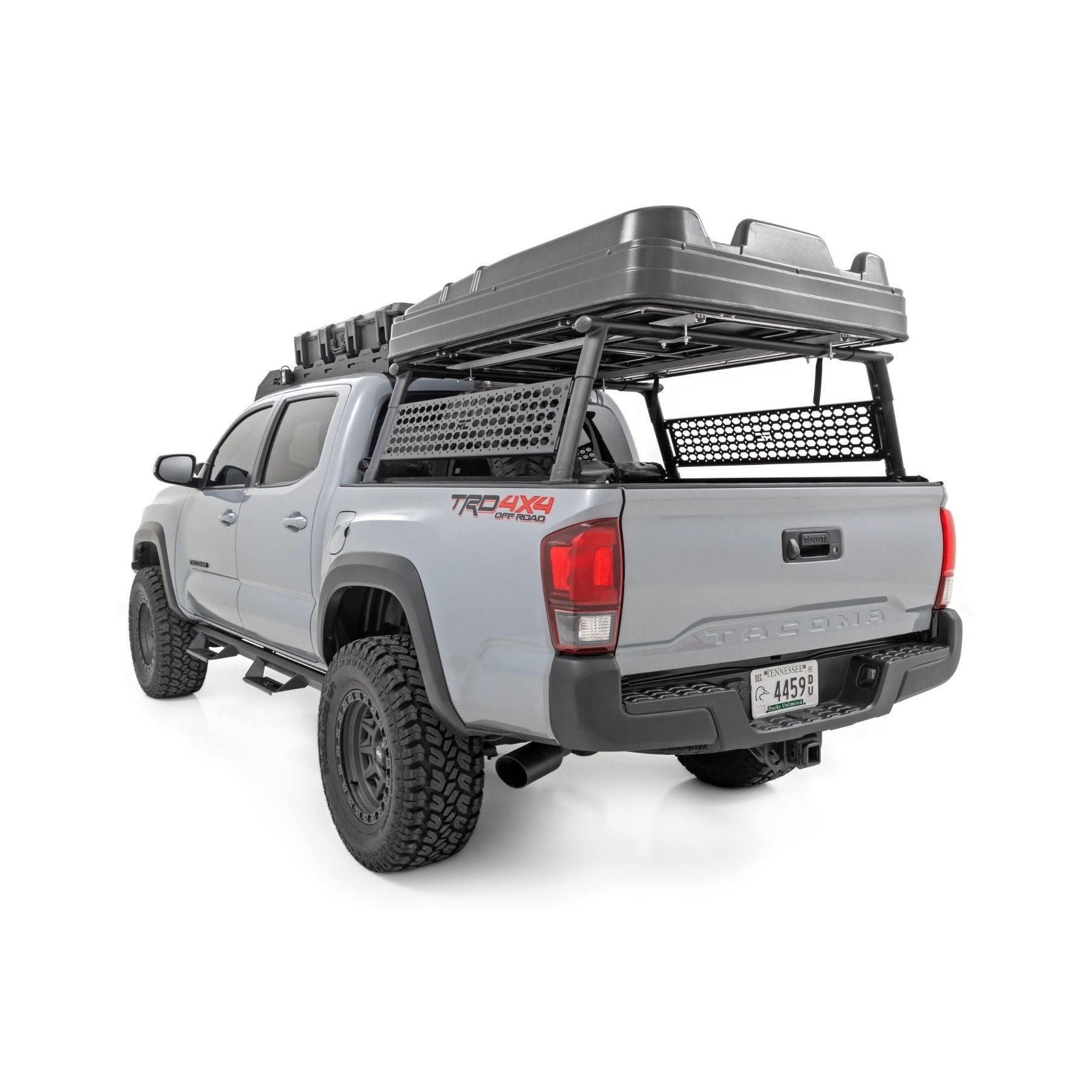 Organize your gear. The Rough Country Toyota Tacoma Bed Rack Molle Panel offers numerous benefits to Toyota owners. Say goodbye to cluttered and disorganized truck beds and take advantage of unlimited accessory attachment options that allow you to make the most of your bed space. Keep your gear secure, easily accessible and neatly stored.