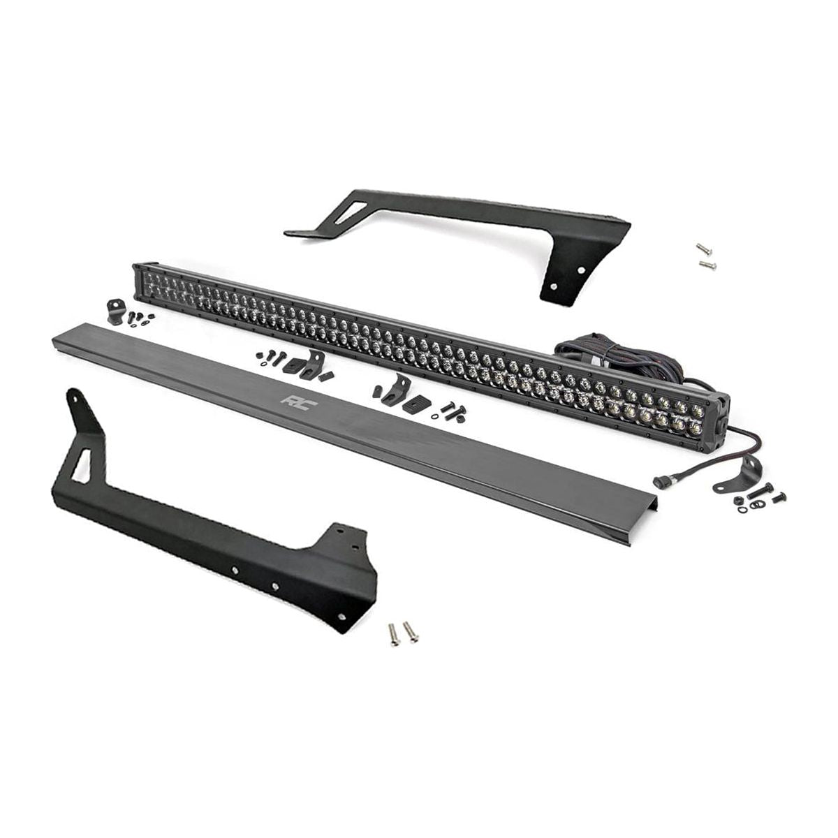 Designed to work with light bars measuring 50-5/16-inches from mounting point to mounting point. I With durable steel construction and aggressive good looks, Rough Country's 50-inch LED Upper Windshield Light Bar Bracket is the ultimate solution for adding our premiere lighting system to your Jeep JK. With its modern, stylistic design and superior strength, this upper windshield mount holds your 50-inch Light Bar between the top of your Wrangler's windshield and roof, spanning the entire width of the roof and giving a killer look. Fits any standard 50-inch Off-Road LED Light.